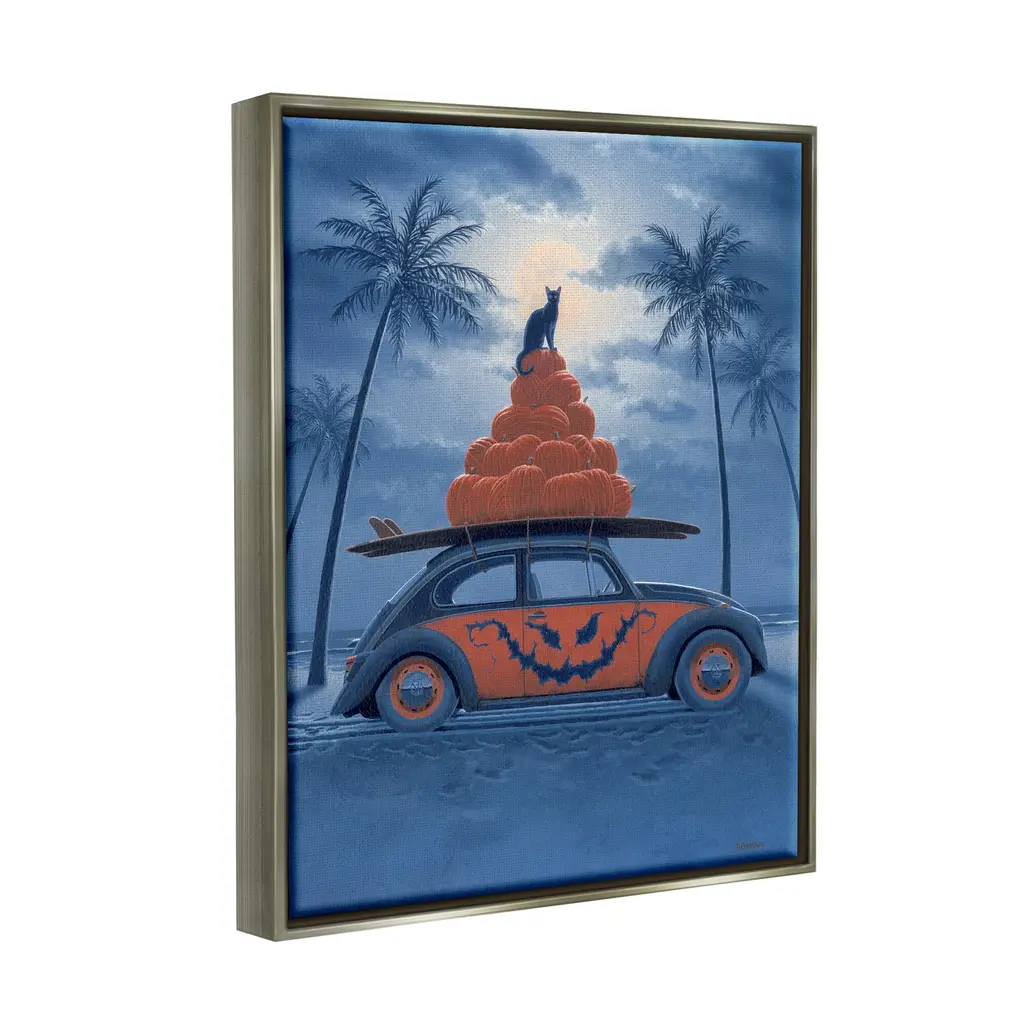 Stupell Spooky Tropical Beach Pumpkin Car Framed Floater Canvas Wall Art By Richard Courtney - 24 X 30 - Grey