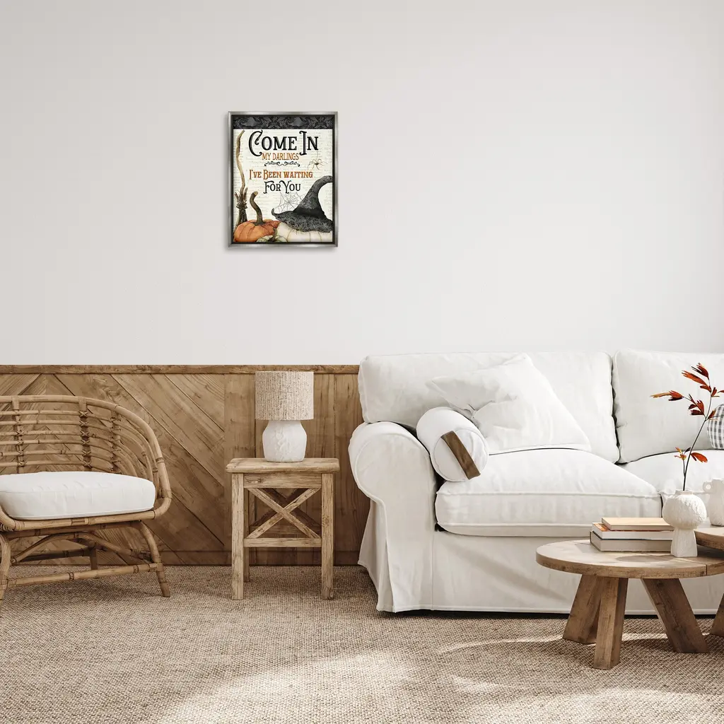 Elevate your home or office to the next level with Stupell Framed Floating Canvas Wall Art. Our premium hand-stretched canvas is mounted securely into a sturdy lightweight frame. The museum-style gap between the wrapped canvas and the box frame gives the illusion of floating artwork. Stupell Wall Art is made in the USA.Features: Dimensions: 17 x 1.7 x 21 Frame, 16 x 1.5 x 20 Canvas ArtFloating Frame Canvas Products are available in sizes 17"x21" and 25"x31". All Floating Frame Canvas Products have a 1.7" Depth.Wall Art is Ready to Hang with Hardware Free Hanging. No Installation required. For Easy Set Up Lean or Layer Artwork on Shelf or Against Wall. Artwork is Permently Fixed into the Frame.Our elevated 1.7" Thick Floating Frame is the perfect complement to our canvas style Wall Art. We use only the highest quality inks in house with industry leading printing solutions. Canvas is hand stretched over a durable wood foundation and then mounted securly into a Modern Box Frame. Made in the USA.Artwork Relates To: Cauldron, Witch, Broom, Halloween, Vintage, Rustic, Spider, Web, Pattern, Come In My Darlings I've Been Waiting For YouDesign by Deane Beesley
