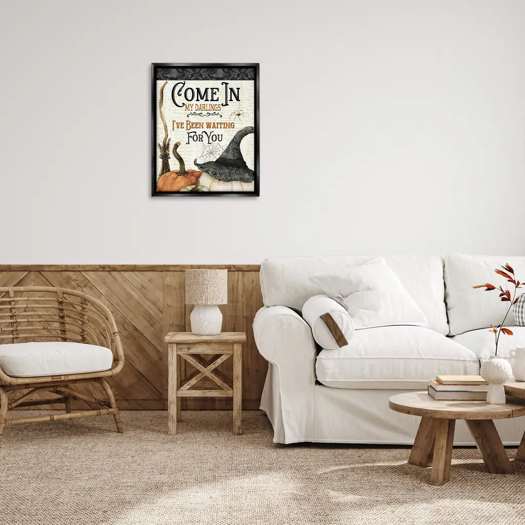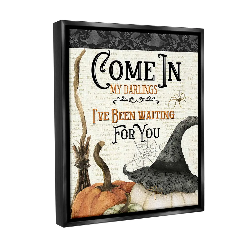 Elevate your home or office to the next level with Stupell Framed Floating Canvas Wall Art. Our premium hand-stretched canvas is mounted securely into a sturdy lightweight frame. The museum-style gap between the wrapped canvas and the box frame gives the illusion of floating artwork. Stupell Wall Art is made in the USA.Features: Dimensions: 17 x 1.7 x 21 Frame, 16 x 1.5 x 20 Canvas ArtFloating Frame Canvas Products are available in sizes 17"x21" and 25"x31". All Floating Frame Canvas Products have a 1.7" Depth.Wall Art is Ready to Hang with Hardware Free Hanging. No Installation required. For Easy Set Up Lean or Layer Artwork on Shelf or Against Wall. Artwork is Permently Fixed into the Frame.Our elevated 1.7" Thick Floating Frame is the perfect complement to our canvas style Wall Art. We use only the highest quality inks in house with industry leading printing solutions. Canvas is hand stretched over a durable wood foundation and then mounted securly into a Modern Box Frame. Made in the USA.Artwork Relates To: Cauldron, Witch, Broom, Halloween, Vintage, Rustic, Spider, Web, Pattern, Come In My Darlings I've Been Waiting For YouDesign by Deane Beesley