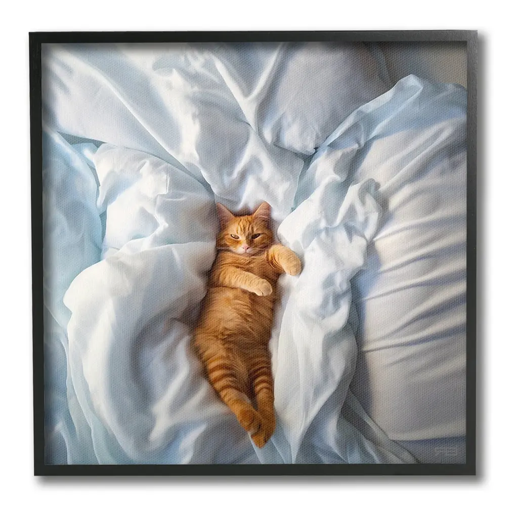 Add dimension to any room with our textured Framed Giclee Artwork. Our framed artwork is securely mounted into a 1.5-inch thick wood grain frame and ready to hang. Frames are available in three alluring styles: black, gray farmhouse and white. In addition, you should check out our oversized options if you want a statement piece. Stupell Wall Art is made in the USA.Features: Dimensions: 12 x 1.5 x 12 FramedFramed Giclee Product Sizes Include 12"x12", 17"x17", and 24"x24". Framed Giclee Products have a 1.5" Depth. Wall Art is Ready to Hang with Hardware Free Hanging. No installation required. For Easy Set Up Lean or Layer Artwork on Shelf or Against Wall.Our giclée prints are carefully mounted on a durable MDF backing, and then perfectly finished in a 1.5 inch thick woodgrain frame. Mounted frame colors include black, gray farmhouse and white. Made In USA.Artwork Relates To: Blanket, Animal, Cat, Mammal, Pet, Pillow, KittenDesign by RB