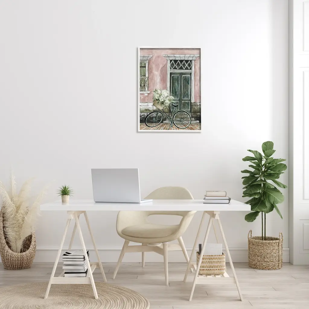 Stupell Spring Bicycle Lush Floral Bouquet Vintage City Architecture Framed Wall Art - Pink - 24 X 30 - White