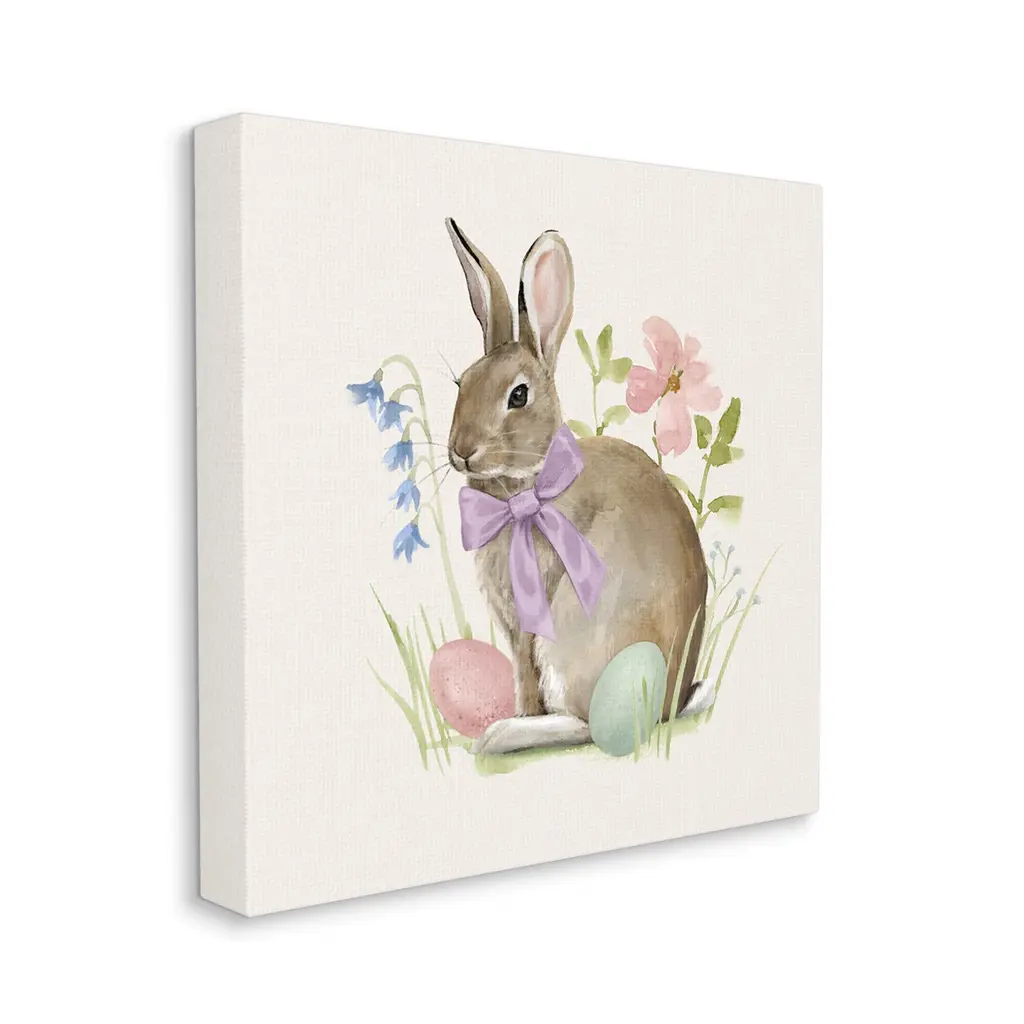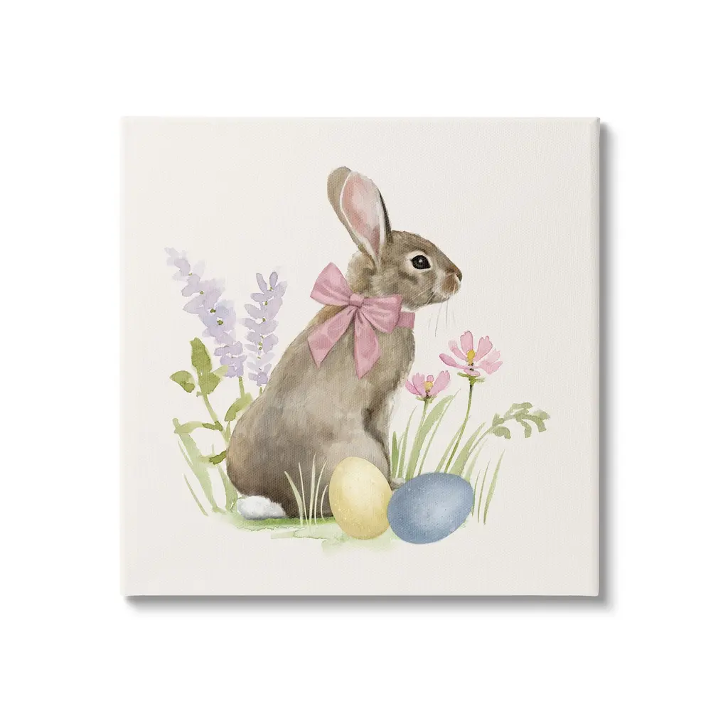 Stupell Spring Bunny Rabbit Easter Eggs Blossoming Flowers Canvas Wall Art - Multi-Color - 24 X 24