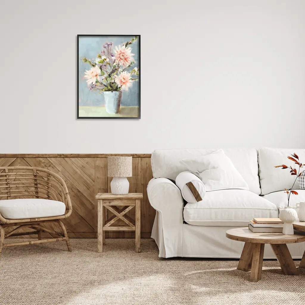 Add dimension to any room with our textured Framed Giclee Artwork. Our framed artwork is securely mounted into a 1.5-inch thick wood grain frame and ready to hang. Frames are available in three alluring styles: black, gray farmhouse and white. In addition, you should check out our oversized options if you want a statement piece. Stupell Wall Art is made in the USA.Features: Dimensions: 11 x 1.5 x 14 FramedFramed Giclee Sizes Include Standard: 11 x 1.5 x 14 Large: 16 x 1.5 x 20 Oversized: 24 x 1.5 x 30Wall Art is Ready to Hang with Hardware Free Hanging. No installation required. For Easy Set Up Lean or Layer Artwork on Shelf or Against Wall.Our giclée prints are carefully mounted on a durable MDF backing, and then perfectly finished in a 1.5 inch thick woodgrain frame. Mounted frame colors include black, gray farmhouse and white. Made In USA.Artwork Relates To: Painting, Dahlia, Flower, Plant, Flower Arrangement, Flower Bouquet, Jar, VaseDesign by Nina Blue