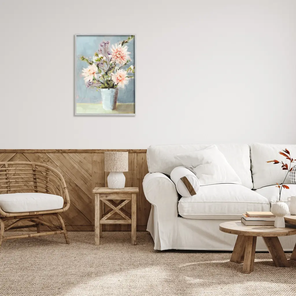 Add dimension to any room with our textured Framed Giclee Artwork. Our framed artwork is securely mounted into a 1.5-inch thick wood grain frame and ready to hang. Frames are available in three alluring styles: black, gray farmhouse and white. In addition, you should check out our oversized options if you want a statement piece. Stupell Wall Art is made in the USA.Features: Dimensions: 11 x 1.5 x 14 FramedFramed Giclee Sizes Include Standard: 11 x 1.5 x 14 Large: 16 x 1.5 x 20 Oversized: 24 x 1.5 x 30Wall Art is Ready to Hang with Hardware Free Hanging. No installation required. For Easy Set Up Lean or Layer Artwork on Shelf or Against Wall.Our giclée prints are carefully mounted on a durable MDF backing, and then perfectly finished in a 1.5 inch thick woodgrain frame. Mounted frame colors include black, gray farmhouse and white. Made In USA.Artwork Relates To: Painting, Dahlia, Flower, Plant, Flower Arrangement, Flower Bouquet, Jar, VaseDesign by Nina Blue