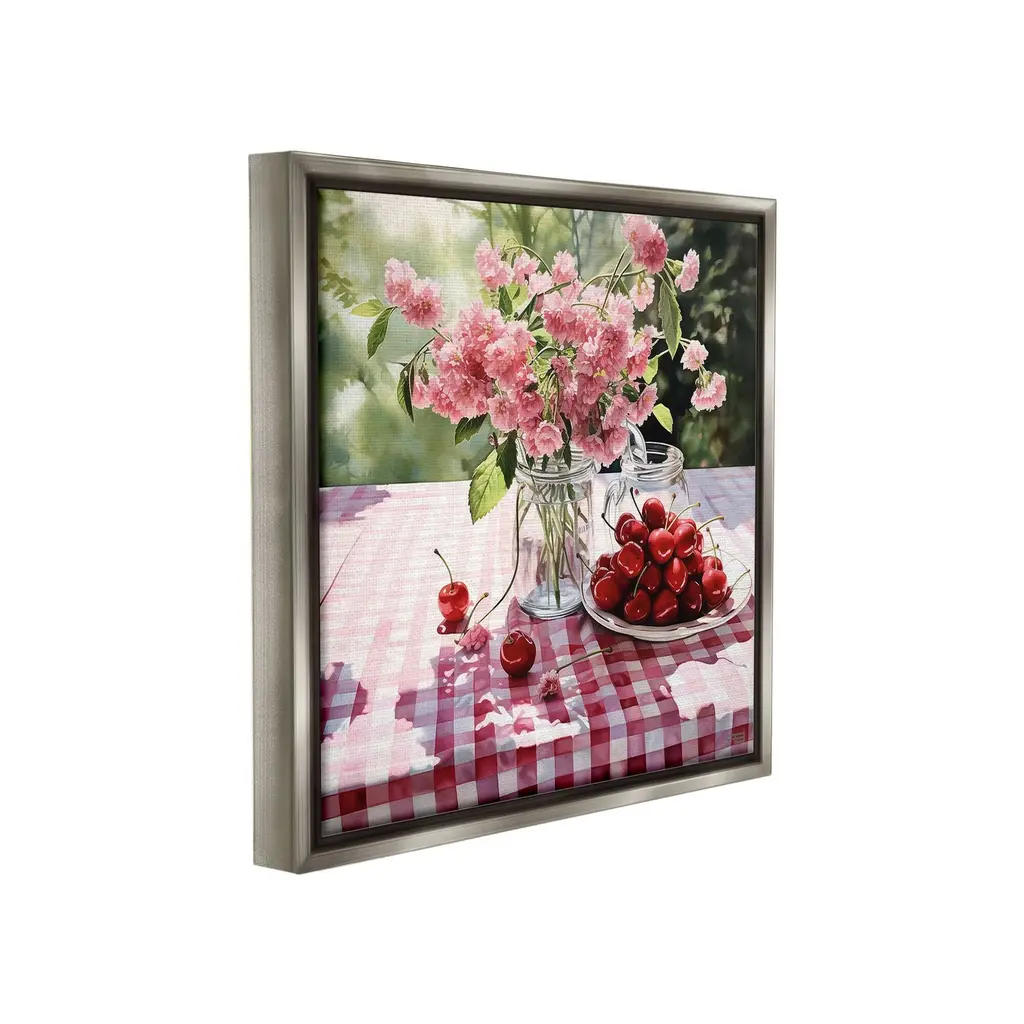Elevate your home or office to the next level with Stupell Framed Floating Canvas Wall Art. Our premium hand-stretched canvas is mounted securely into a sturdy lightweight frame. The museum-style gap between the wrapped canvas and the box frame gives the illusion of floating artwork. Stupell Wall Art is made in the USA.Features: Dimensions: 18 x 1.7 x 18 Frame, 17 x 1.5 x 17 Canvas ArtFloating Frame Canvas Products are available in sizes 18"x18" and 25"x25". All Floating Frame Canvas Products have a 1.7" Depth.Wall Art is Ready to Hang with Hardware Free Hanging. No Installation required. For Easy Set Up Lean or Layer Artwork on Shelf or Against Wall. Artwork is Permently Fixed into the Frame.Our elevated 1.7" Thick Floating Frame is the perfect complement to our canvas style Wall Art. We use only the highest quality inks in house with industry leading printing solutions. Canvas is hand stretched over a durable wood foundation and then mounted securly into a Modern Box Frame. Made in the USA.Artwork Relates To: Food, Fruit, Plant, Produce, Flower, Cherry, Bouquet, Pink, Summer, Spring, Gingham, PatternDesign by RB