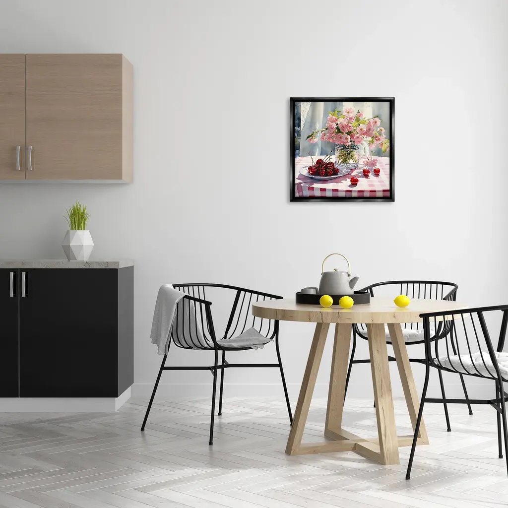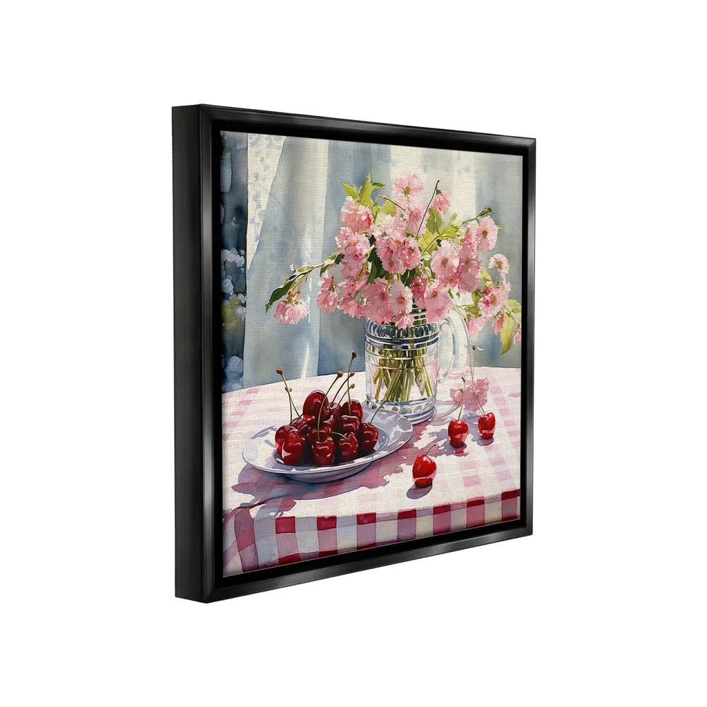 Elevate your home or office to the next level with Stupell Framed Floating Canvas Wall Art. Our premium hand-stretched canvas is mounted securely into a sturdy lightweight frame. The museum-style gap between the wrapped canvas and the box frame gives the illusion of floating artwork. Stupell Wall Art is made in the USA.Features: Dimensions: 18 x 1.7 x 18 Frame, 17 x 1.5 x 17 Canvas ArtFloating Frame Canvas Products are available in sizes 18"x18" and 25"x25". All Floating Frame Canvas Products have a 1.7" Depth.Wall Art is Ready to Hang with Hardware Free Hanging. No Installation required. For Easy Set Up Lean or Layer Artwork on Shelf or Against Wall. Artwork is Permently Fixed into the Frame.Our elevated 1.7" Thick Floating Frame is the perfect complement to our canvas style Wall Art. We use only the highest quality inks in house with industry leading printing solutions. Canvas is hand stretched over a durable wood foundation and then mounted securly into a Modern Box Frame. Made in the USA.Artwork Relates To: Food, Fruit, Plant, Produce, Flower, Cherry, Bouquet, Pink, Summer, Spring, Gingham, PatternDesign by RB