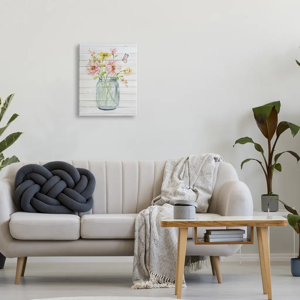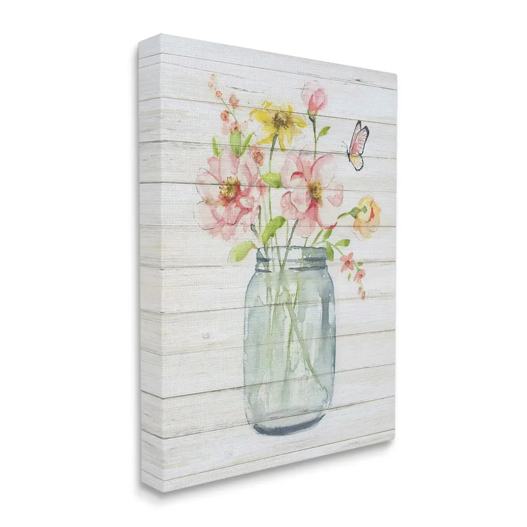Stupell Spring Wild Flower Assortment Country Mason Jar Butterfly Canvas Wall Art - Multi-Color - 16 X 20