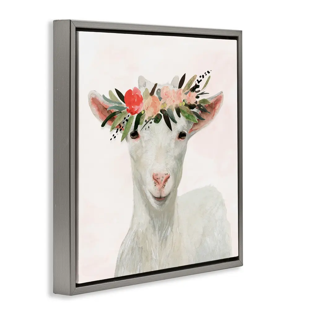 Elevate your home or office to the next level with Stupell Framed Floating Canvas Wall Art. Our premium hand-stretched canvas is mounted securely into a sturdy lightweight frame. The museum-style gap between the wrapped canvas and the box frame gives the illusion of floating artwork. Stupell Wall Art is made in the USA.Features: Dimensions: 18 x 1.7 x 18 Frame, 17 x 1.5 x 17 Canvas ArtFloating Frame Canvas Products are available in sizes 18"x18" and 25"x25". All Floating Frame Canvas Products have a 1.7" Depth.Wall Art is Ready to Hang with Hardware Free Hanging. No Installation required. For Easy Set Up Lean or Layer Artwork on Shelf or Against Wall. Artwork is Permently Fixed into the Frame.Our elevated 1.7" Thick Floating Frame is the perfect complement to our canvas style Wall Art. We use only the highest quality inks in house with industry leading printing solutions. Canvas is hand stretched over a durable wood foundation and then mounted securly into a Modern Box Frame. Made in the USA.Artwork Relates To: Animal, Farm, Country, Goat, Sheep, Floral, FlowerDesign by Victoria Borges