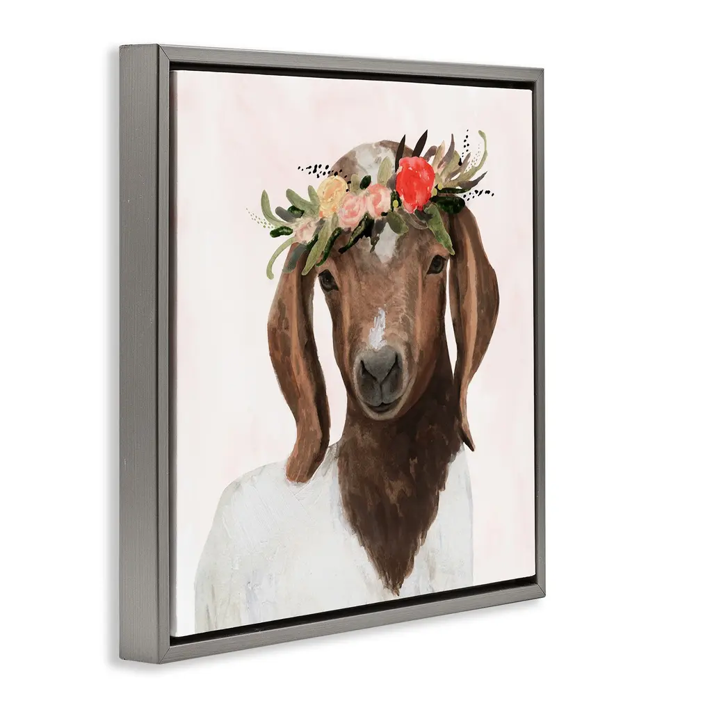 Stupell Springtime Flower Crown Long Ear Goat Framed Floater Canvas Wall Art Design By Victoria Borges - 18 X 18 - Grey