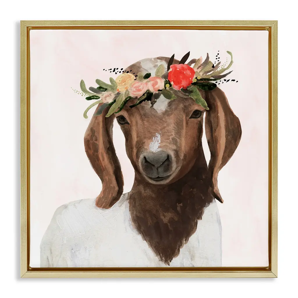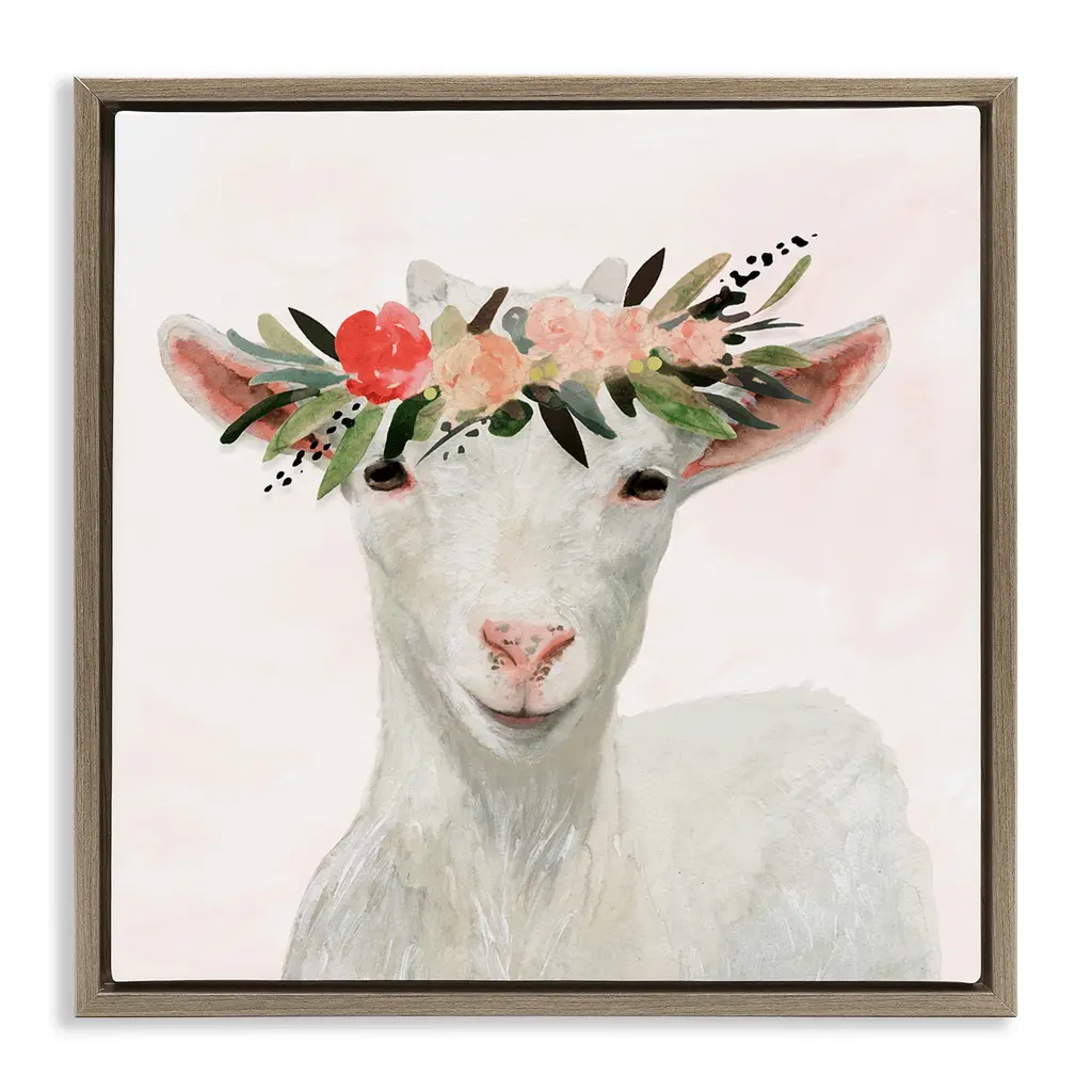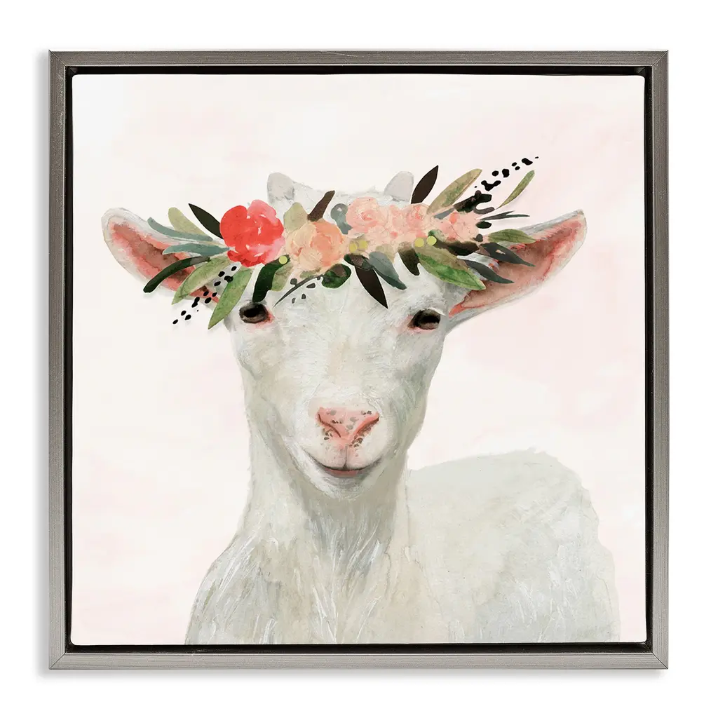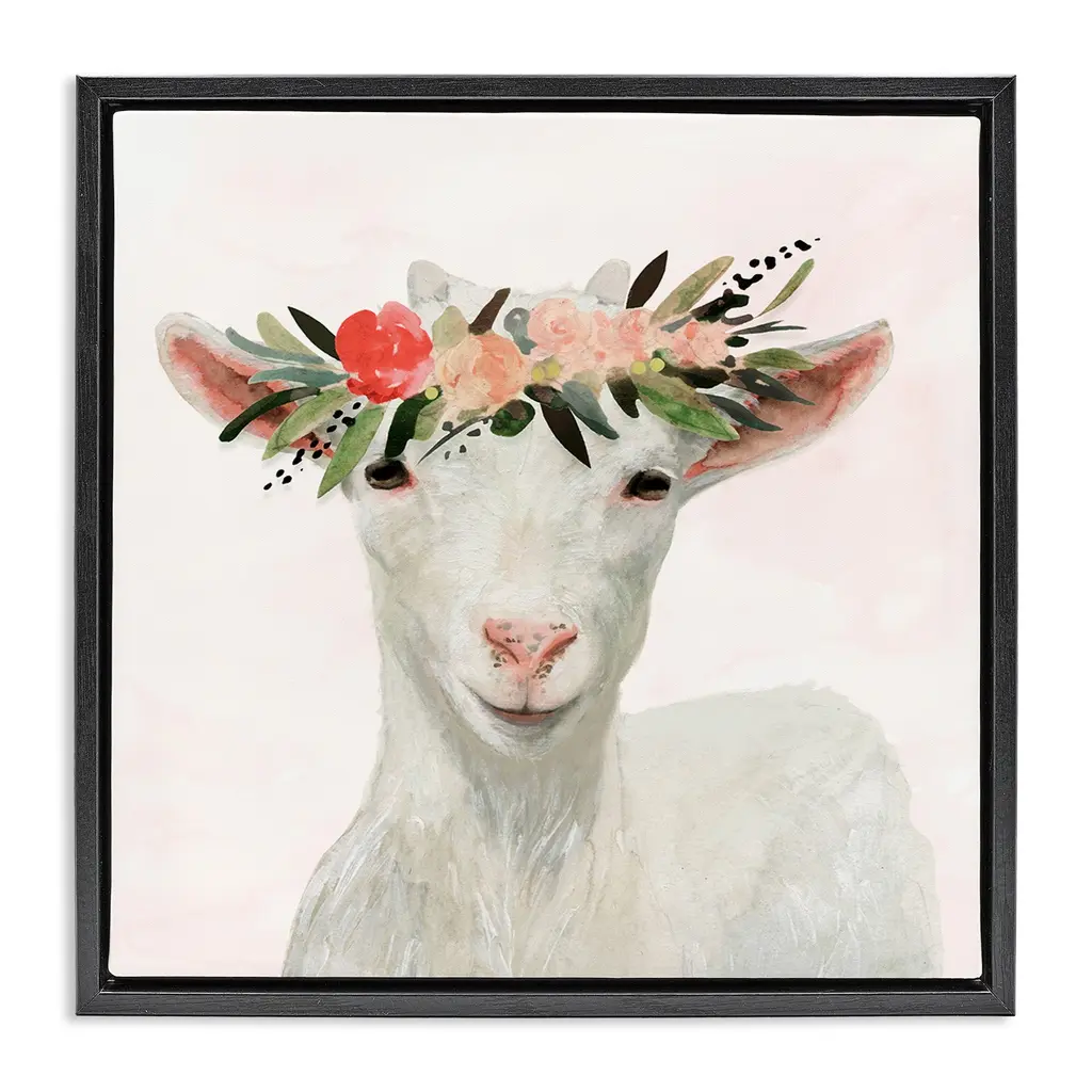 Elevate your home or office to the next level with Stupell Framed Floating Canvas Wall Art. Our premium hand-stretched canvas is mounted securely into a sturdy lightweight frame. The museum-style gap between the wrapped canvas and the box frame gives the illusion of floating artwork. Stupell Wall Art is made in the USA.Features: Dimensions: 18 x 1.7 x 18 Frame, 17 x 1.5 x 17 Canvas ArtFloating Frame Canvas Products are available in sizes 18"x18" and 25"x25". All Floating Frame Canvas Products have a 1.7" Depth.Wall Art is Ready to Hang with Hardware Free Hanging. No Installation required. For Easy Set Up Lean or Layer Artwork on Shelf or Against Wall. Artwork is Permently Fixed into the Frame.Our elevated 1.7" Thick Floating Frame is the perfect complement to our canvas style Wall Art. We use only the highest quality inks in house with industry leading printing solutions. Canvas is hand stretched over a durable wood foundation and then mounted securly into a Modern Box Frame. Made in the USA.Artwork Relates To: Animal, Farm, Country, Goat, Sheep, Floral, FlowerDesign by Victoria Borges
