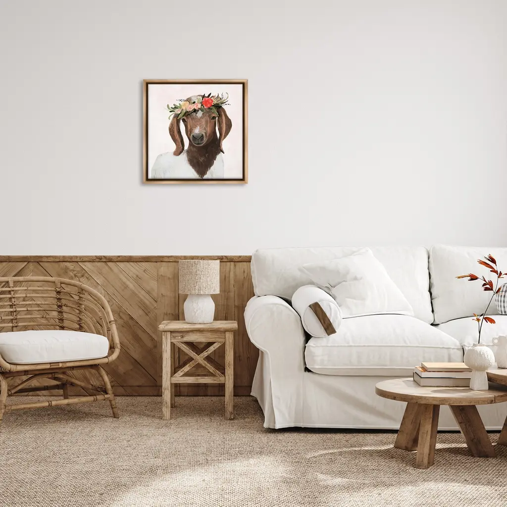 Stupell Springtime Flower Crown Long Ear Goat Framed Floater Canvas Wall Art Design By Victoria Borges - 25 X 25 - Brown