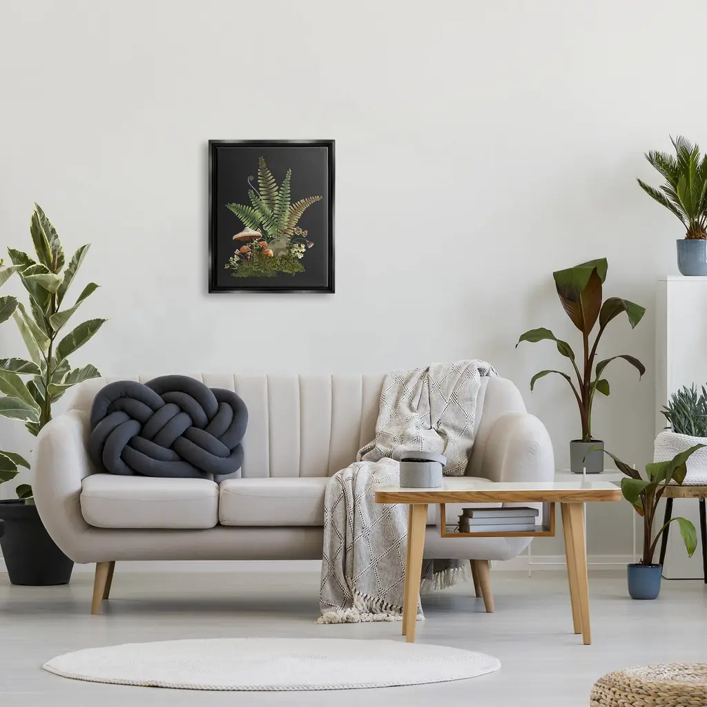 Elevate your home or office to the next level with Stupell Framed Floating Canvas Wall Art. Our premium hand stretched canvas is mounted securly into a sturdy lightweight frame. The museum style gap between wrapped canvas and box frame gives the illusion of floating artwork. Features: Dimensions: 17 x 1.7 x 21 Frame, 16 x 1.5 x 20 Canvas ArtFloating Frame Sizes Include Standard: 17 x 1.7 x 21 Oversized: 25 x 1.7 x 31Wall Art is Ready to Hang - No Installation or Hardware Needed. For Easy Set Up Lean or Layer Artwork on Shelf or Against Wall.Our elevated 1.7" Thick Floating Frame is the perfect complement to our canvas style Wall Art. We use only the highest quality inks in house with industry leading printing solutions. Canvas is hand stretched over a durable wood foundation and then mounted securly into a Modern Box Frame. Made in the USA.Artwork Relates To: Plant, Fern, Flower, Fungus, Leaf, Floral, Herb, Forest, Woodland, MushroomDesign by House of Rose
