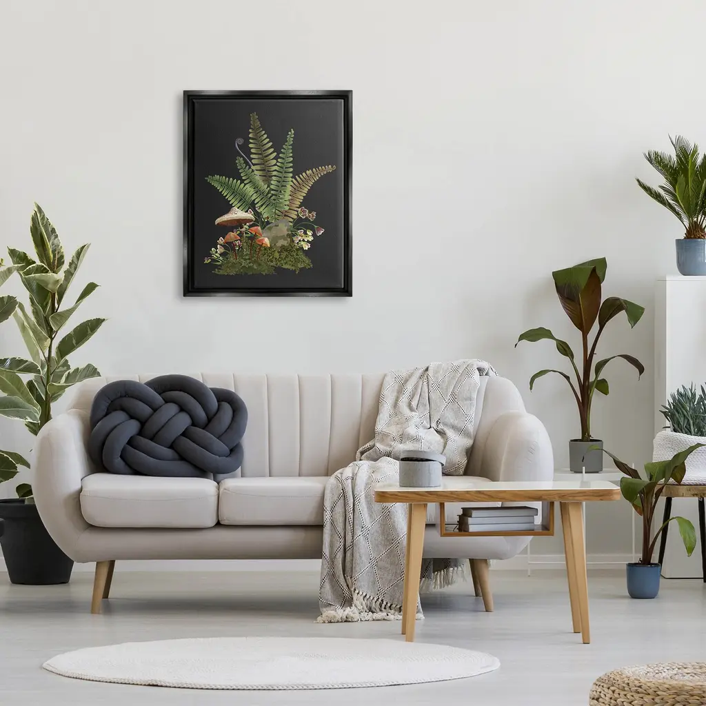 Elevate your home or office to the next level with Stupell Framed Floating Canvas Wall Art. Our premium hand stretched canvas is mounted securly into a sturdy lightweight frame. The museum style gap between wrapped canvas and box frame gives the illusion of floating artwork. Features: Dimensions: 17 x 1.7 x 21 Frame, 16 x 1.5 x 20 Canvas ArtFloating Frame Sizes Include Standard: 17 x 1.7 x 21 Oversized: 25 x 1.7 x 31Wall Art is Ready to Hang - No Installation or Hardware Needed. For Easy Set Up Lean or Layer Artwork on Shelf or Against Wall.Our elevated 1.7" Thick Floating Frame is the perfect complement to our canvas style Wall Art. We use only the highest quality inks in house with industry leading printing solutions. Canvas is hand stretched over a durable wood foundation and then mounted securly into a Modern Box Frame. Made in the USA.Artwork Relates To: Plant, Fern, Flower, Fungus, Leaf, Floral, Herb, Forest, Woodland, MushroomDesign by House of Rose