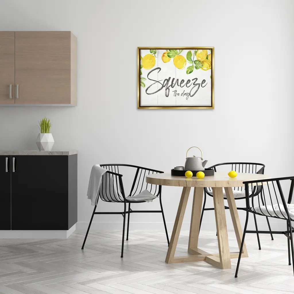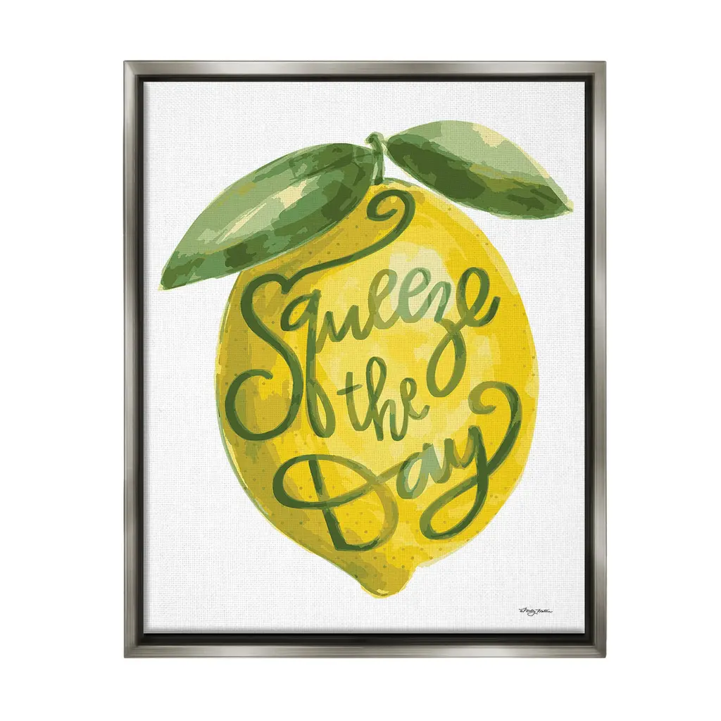 Elevate your home or office to the next level with Stupell Framed Floating Canvas Wall Art. Our premium hand-stretched canvas is mounted securely into a sturdy lightweight frame. The museum-style gap between the wrapped canvas and the box frame gives the illusion of floating artwork. Stupell Wall Art is made in the USA.Features: Dimensions: 21 x 1.7 x 17 Frame, 20 x 1.5 x 16 Canvas ArtFloating Frame Canvas Products are available in sizes 21"x17" and 31"x25". All Floating Frame Canvas Products have a 1.7" Depth.Wall Art is Ready to Hang with Hardware Free Hanging. No Installation required. For Easy Set Up Lean or Layer Artwork on Shelf or Against Wall. Artwork is Permently Fixed into the Frame.Our elevated 1.7" Thick Floating Frame is the perfect complement to our canvas style Wall Art. We use only the highest quality inks in house with industry leading printing solutions. Canvas is hand stretched over a durable wood foundation and then mounted securly into a Modern Box Frame. Made in the USA.Artwork Relates To: Citrus, Food, Fruit, Lemon, Plant, Produce, Country, Kitchen, Rustic, Squeeze the DayDesign by Nan