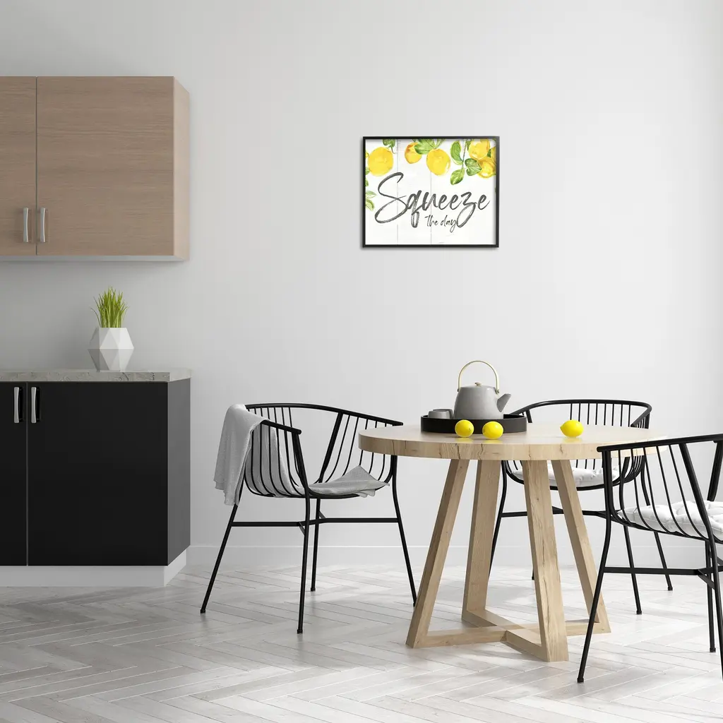 Add dimension to any room with our textured Framed Giclee Artwork. Our framed artwork is securely mounted into a 1.5-inch thick wood grain frame and ready to hang. Frames are available in three alluring styles: black, gray farmhouse and white. In addition, you should check out our oversized options if you want a statement piece. Stupell Wall Art is made in the USA.Features: Dimensions: 14 x 1.5 x 11 FramedFramed Giclee Products are available in the sizes 14"x11", 20"x16" or 30"x24". All Framed Giclee Products have a 1.5" Depth. Wall Art is Ready to Hang with Hardware Free Hanging. No installation required. For Easy Set Up Lean or Layer Artwork on Shelf or Against Wall.Our giclée prints are carefully mounted on a durable MDF backing, and then perfectly finished in a 1.5 inch thick woodgrain frame. Mounted frame colors include black, gray farmhouse and white. Made In USA.Artwork Relates To: Citrus, Food, Fruit, Lemon, Plant, Produce, Country, Kitchen, Rustic, Squeeze the DayDesign by Nan