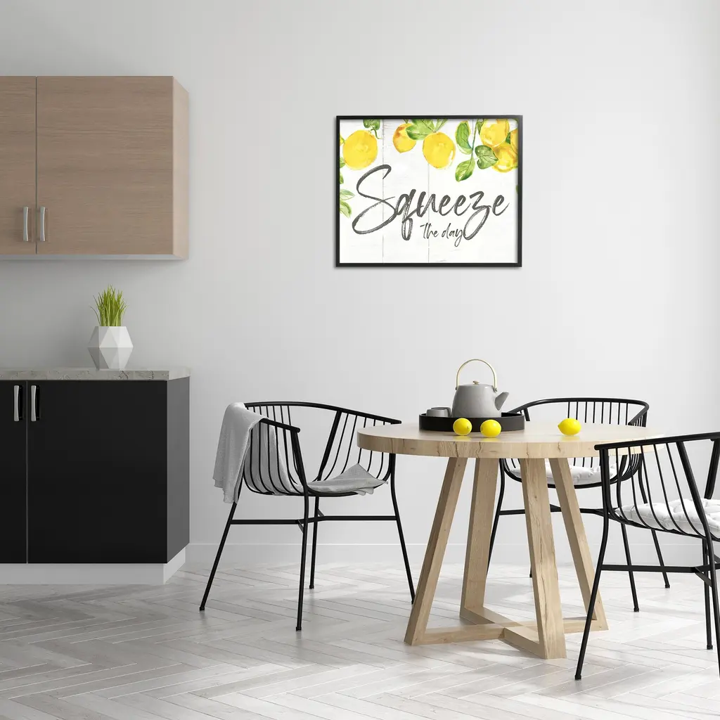 Add dimension to any room with our textured Framed Giclee Artwork. Our framed artwork is securely mounted into a 1.5-inch thick wood grain frame and ready to hang. Frames are available in three alluring styles: black, gray farmhouse and white. In addition, you should check out our oversized options if you want a statement piece. Stupell Wall Art is made in the USA.Features: Dimensions: 14 x 1.5 x 11 FramedFramed Giclee Products are available in the sizes 14"x11", 20"x16" or 30"x24". All Framed Giclee Products have a 1.5" Depth. Wall Art is Ready to Hang with Hardware Free Hanging. No installation required. For Easy Set Up Lean or Layer Artwork on Shelf or Against Wall.Our giclée prints are carefully mounted on a durable MDF backing, and then perfectly finished in a 1.5 inch thick woodgrain frame. Mounted frame colors include black, gray farmhouse and white. Made In USA.Artwork Relates To: Citrus, Food, Fruit, Lemon, Plant, Produce, Country, Kitchen, Rustic, Squeeze the DayDesign by Nan