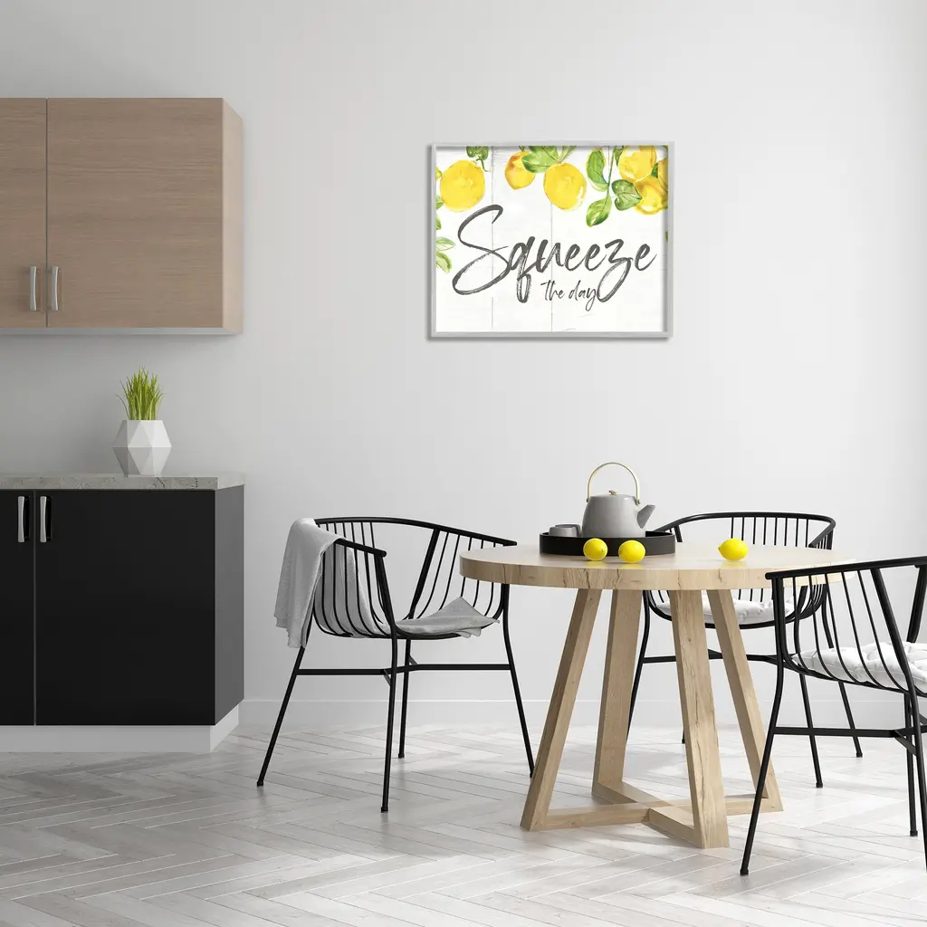 Add dimension to any room with our textured Framed Giclee Artwork. Our framed artwork is securely mounted into a 1.5-inch thick wood grain frame and ready to hang. Frames are available in three alluring styles: black, gray farmhouse and white. In addition, you should check out our oversized options if you want a statement piece. Stupell Wall Art is made in the USA.Features: Dimensions: 14 x 1.5 x 11 FramedFramed Giclee Products are available in the sizes 14"x11", 20"x16" or 30"x24". All Framed Giclee Products have a 1.5" Depth. Wall Art is Ready to Hang with Hardware Free Hanging. No installation required. For Easy Set Up Lean or Layer Artwork on Shelf or Against Wall.Our giclée prints are carefully mounted on a durable MDF backing, and then perfectly finished in a 1.5 inch thick woodgrain frame. Mounted frame colors include black, gray farmhouse and white. Made In USA.Artwork Relates To: Citrus, Food, Fruit, Lemon, Plant, Produce, Country, Kitchen, Rustic, Squeeze the DayDesign by Nan