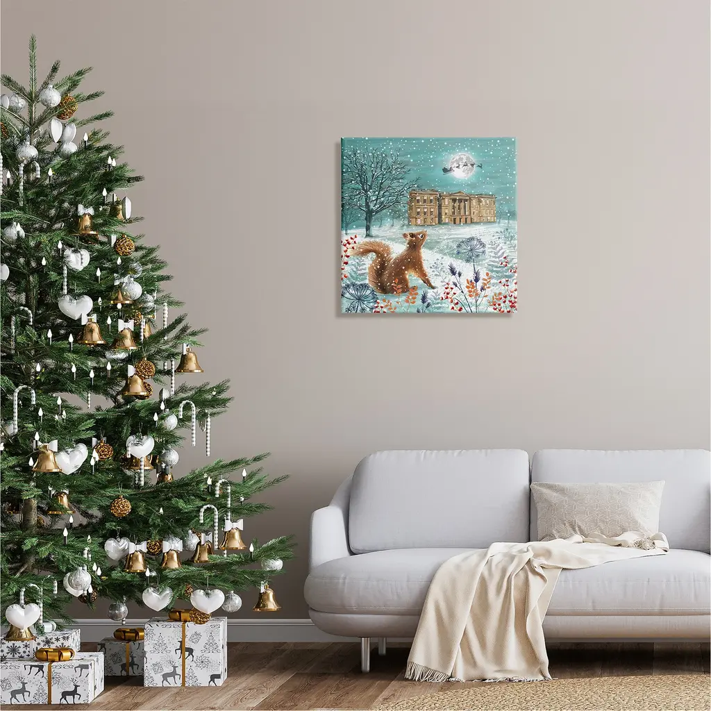 We create our stretched canvas to the highest standards. Using only the highest quality inks and canvas on Mimaki printers, we hand-cut and stretch each piece over a 1.5-inch thick wooden frame for hanging. As a result, the art comes ready to hang on the sturdy ledge with no installation required. Stupell Wall Art is made in the USA.Features: Dimensions: 17 x 1.5 x 17 InchesStretched Canvas Sizes Include Standard: 17 x 1.5 x 17 Large: 24 x 1.5 x 24 X-Large: 30 x 1.5 x 30 Oversized: 36 x 1.5 x 36Wall Art is Ready to Hang - No Installation or Hardware Needed. For Easy Set Up Lean or Layer Artwork on Shelf or Against Wall.Our stretched canvas is created with the highest standards. We use only the highest quality inks and canvas on our in house Mimaki printers, and then hand cut and stretch each piece over a 1.5 inch thick wooden frame for hanging. Made In USA.Artwork Relates To: Animal, Mammal, Wildlife, Building, Squirrel, Botanical, Plants, Santa Claus, MoonDesign by Jane Sunner