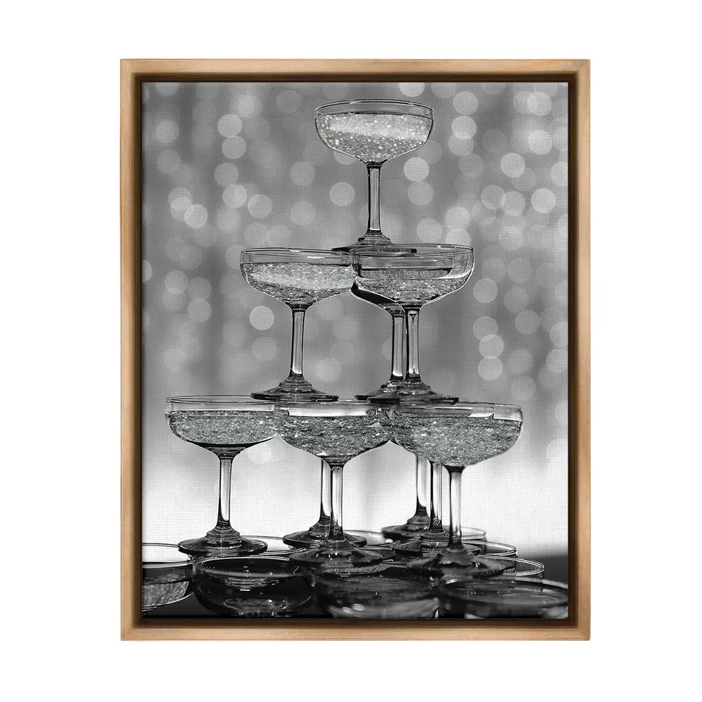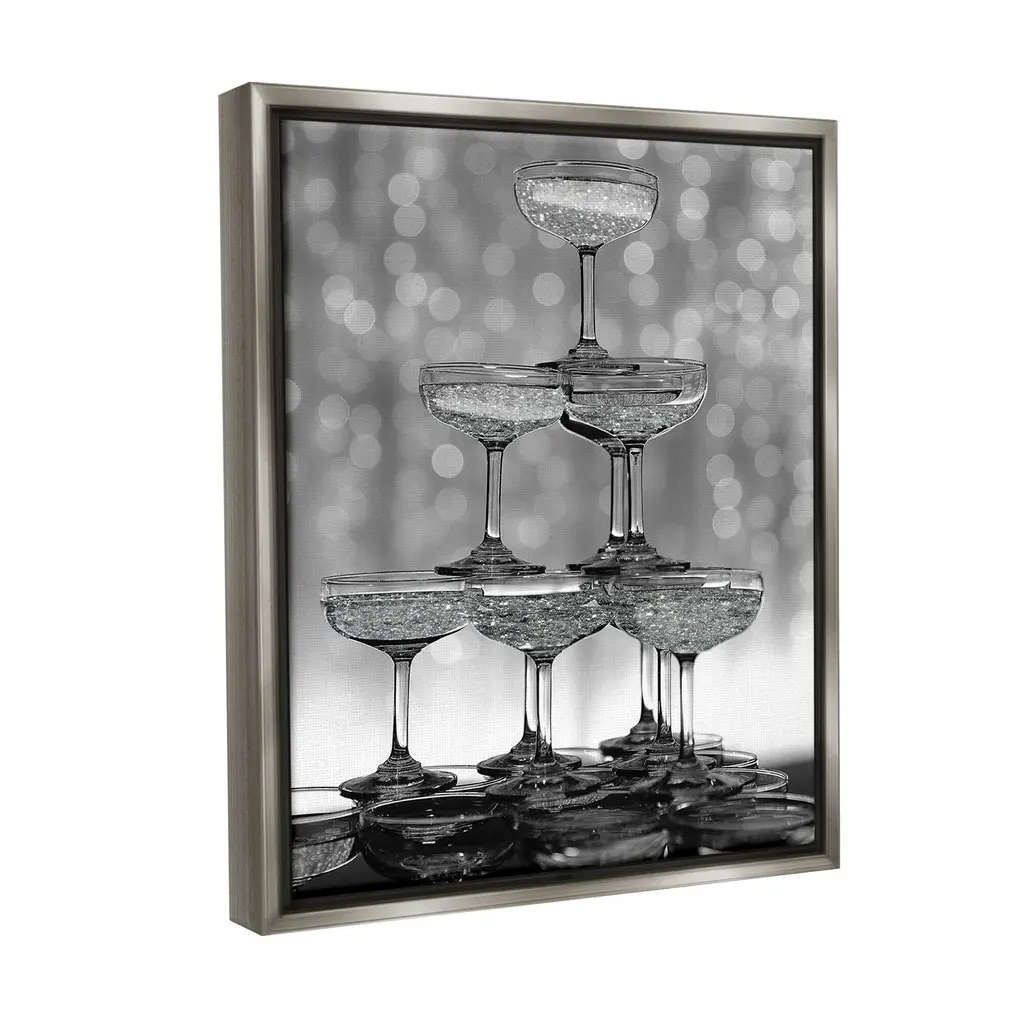 Stupell Stacked Champagne Glasses Framed Floater Canvas Wall Art Design By Lil' Rue - 17 X 21 - Grey