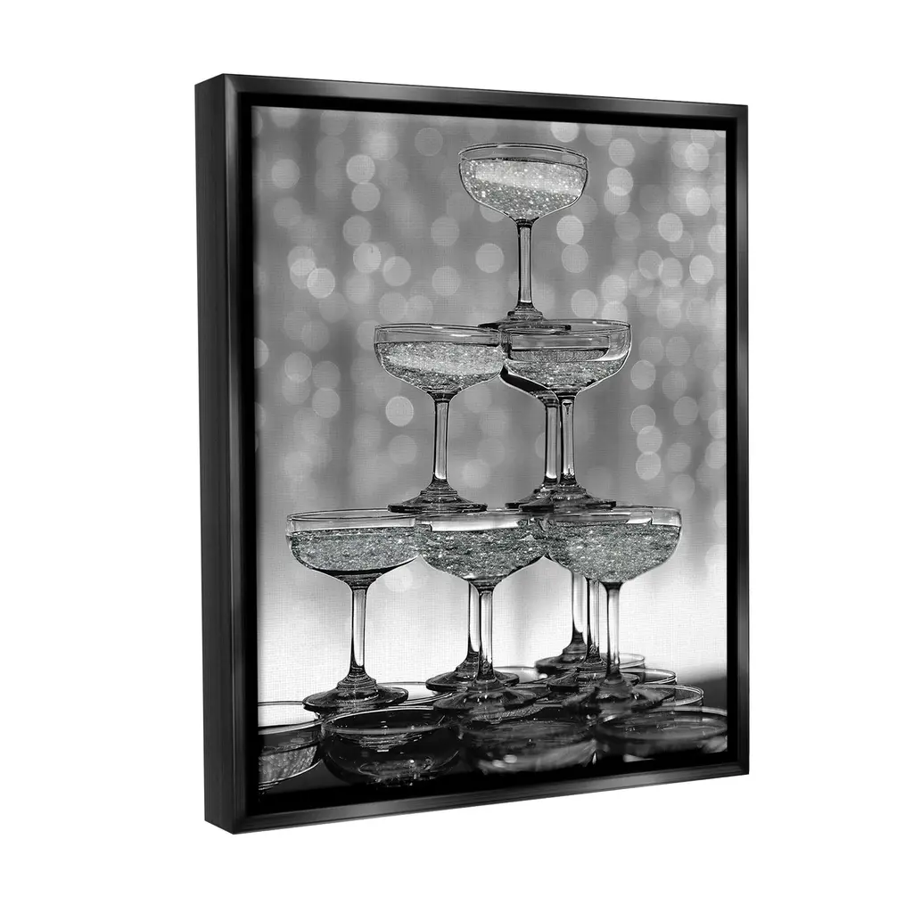 Stupell Stacked Champagne Glasses Framed Floater Canvas Wall Art Design By Lil' Rue - 25 X 31 - Black