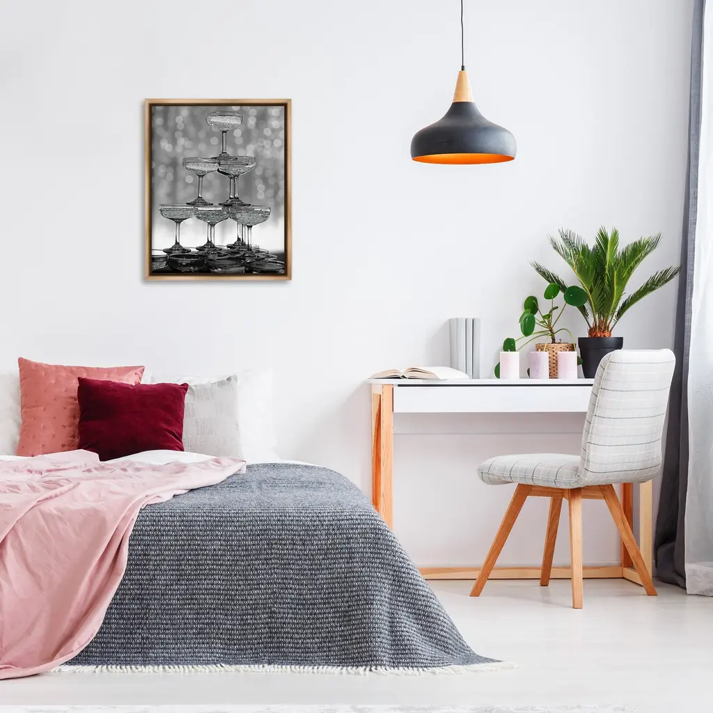 Elevate your home or office to the next level with Stupell Framed Floating Canvas Wall Art. Our premium hand-stretched canvas is mounted securely into a sturdy lightweight frame. The museum-style gap between the wrapped canvas and the box frame gives the illusion of floating artwork. Stupell Wall Art is made in the USA.Features: Dimensions: 17 x 1.7 x 21 Frame, 16 x 1.5 x 20 Canvas ArtFloating Frame Canvas Products are available in sizes 17"x21" and 25"x31". All Floating Frame Canvas Products have a 1.7" Depth.Wall Art is Ready to Hang with Hardware Free Hanging. No Installation required. For Easy Set Up Lean or Layer Artwork on Shelf or Against Wall. Artwork is Permently Fixed into the Frame.Our elevated 1.7" Thick Floating Frame is the perfect complement to our canvas style Wall Art. We use only the highest quality inks in house with industry leading printing solutions. Canvas is hand stretched over a durable wood foundation and then mounted securly into a Modern Box Frame. Made in the USA.Artwork Relates To: Glass, Alcohol, Beverage, Liquor, Wine, Wine Glass, Glam, MonochromeDesign by Lil' Rue