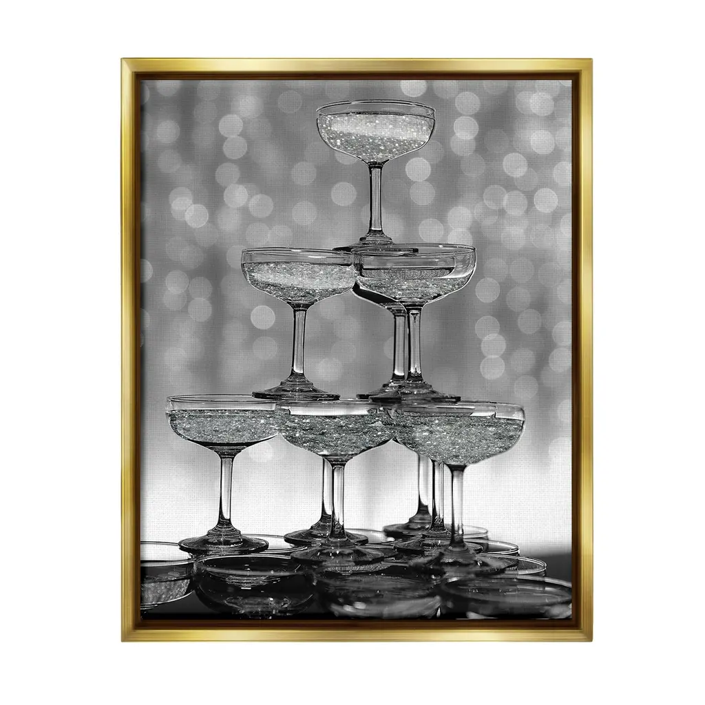 Stupell Stacked Champagne Glasses Framed Giclee Art Design By Lil' Rue - 11 X 14 - Black