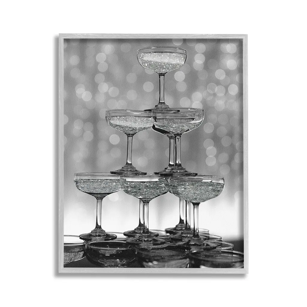 Stupell Stacked Champagne Glasses Framed Giclee Art Design By Lil' Rue - 24 X 30 - Black