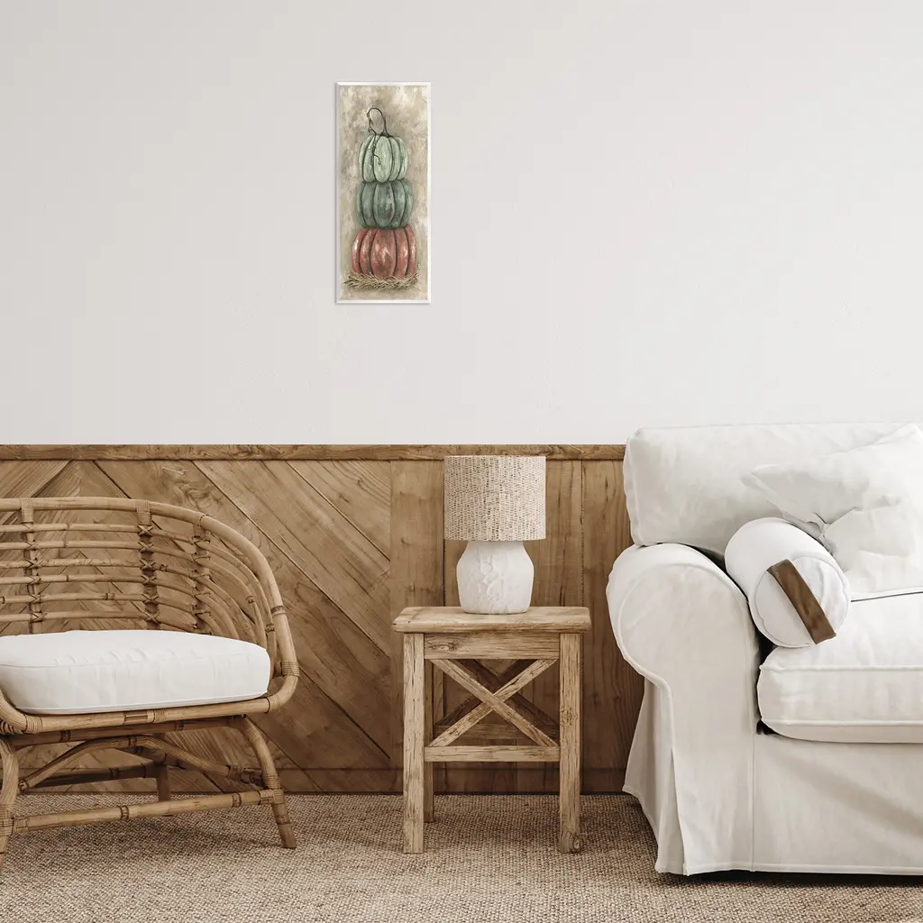 Our wall plaques start as high-quality lithograph prints mounted on durable 0.5-inch thick MDF wood. Each piece is hand finished and comes with a fresh layer of white foil on the sides to give it a crisp, clean look. Plaques arrive ready to hang without installation and come with removable plastic corners to keep them from damage in transit. Stupell Wall Art is made in the USA.Features: Dimensions: 7 x 0.5 x 17 InchesWall Art is Ready to Hang with Hardware Free Hanging. No installation required. For Easy Set Up Lean or Layer Artwork on Shelf or Against Wall.All of our wall plaques start off as high quality lithograph prints that are then mounted on durable 0.5 inch thick MDF wood. Each piece is hand finished and comes with a fresh layer of foil on the sides to give it a crisp clean look. Made In USA.Artwork Relates To: Pumpkin, Produce, Fall, Autumn, Country, RusticDesign by Julie Norkus