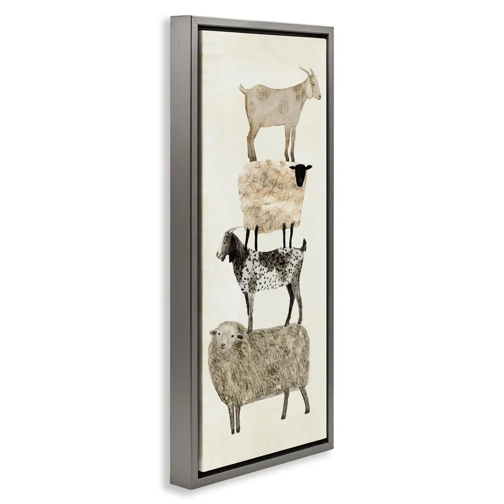 Stupell Stacked Sheep & Goats Framed Floater Canvas Wall Art Design By Victoria Borges - 11 X 25 - Grey