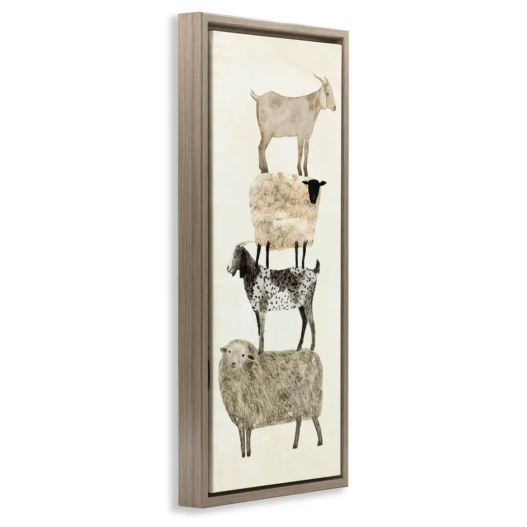 Elevate your home or office to the next level with Stupell Framed Floating Canvas Wall Art. Our premium hand-stretched canvas is mounted securely into a sturdy lightweight frame. The museum-style gap between the wrapped canvas and the box frame gives the illusion of floating artwork. Stupell Wall Art is made in the USA.Features: Dimensions: 11 x 1.7 x 25 Frame, 10 x 1.5 x 24 Canvas ArtFloating Frame Canvas Products are available in sizes 11"x25" and 14"x31". All Floating Frame Canvas Products have a 1.7" Depth.Wall Art is Ready to Hang with Hardware Free Hanging. No Installation required. For Easy Set Up Lean or Layer Artwork on Shelf or Against Wall. Artwork is Permently Fixed into the Frame.Our elevated 1.7" Thick Floating Frame is the perfect complement to our canvas style Wall Art. We use only the highest quality inks in house with industry leading printing solutions. Canvas is hand stretched over a durable wood foundation and then mounted securly into a Modern Box Frame. Made in the USA.Artwork Relates To: Animal, Mammal, Sheep, Cattle, Cow, Goat, Farmhouse, CountryDesign by Victoria Borges