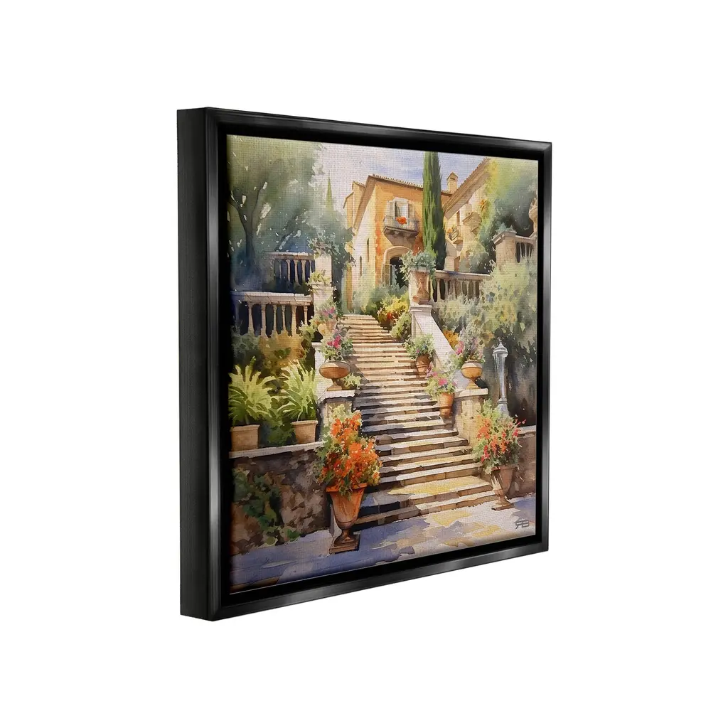 Elevate your home or office to the next level with Stupell Framed Floating Canvas Wall Art. Our premium hand-stretched canvas is mounted securely into a sturdy lightweight frame. The museum-style gap between the wrapped canvas and the box frame gives the illusion of floating artwork. Stupell Wall Art is made in the USA.Features: Dimensions: 18 x 1.7 x 18 Frame, 17 x 1.5 x 17 Canvas ArtFloating Frame Canvas Products are available in sizes 18"x18" and 25"x25". All Floating Frame Canvas Products have a 1.7" Depth.Wall Art is Ready to Hang with Hardware Free Hanging. No Installation required. For Easy Set Up Lean or Layer Artwork on Shelf or Against Wall. Artwork is Permently Fixed into the Frame.Our elevated 1.7" Thick Floating Frame is the perfect complement to our canvas style Wall Art. We use only the highest quality inks in house with industry leading printing solutions. Canvas is hand stretched over a durable wood foundation and then mounted securly into a Modern Box Frame. Made in the USA.Artwork Relates To: Architecture, Building, House, Villa, Staircase, Plant, Potted Plant, Hacienda, Garden, Nature, City, Road, Street, Flower, Cottage, Town, EuropeanDesign by RB