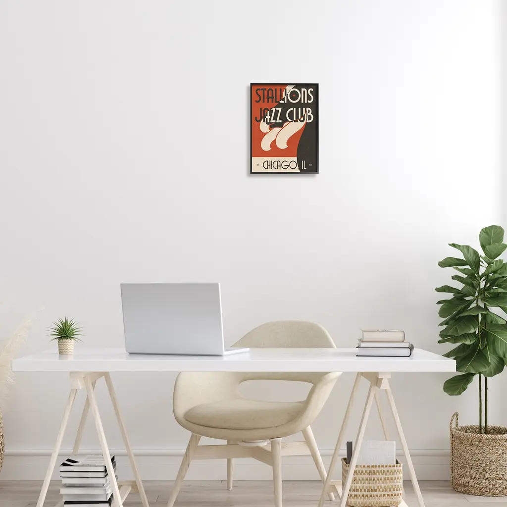 Stupell Stallions Jazz Club Retro Abstract Horse Chicago Illinois Framed Wall Art - 11 X 14 - Black