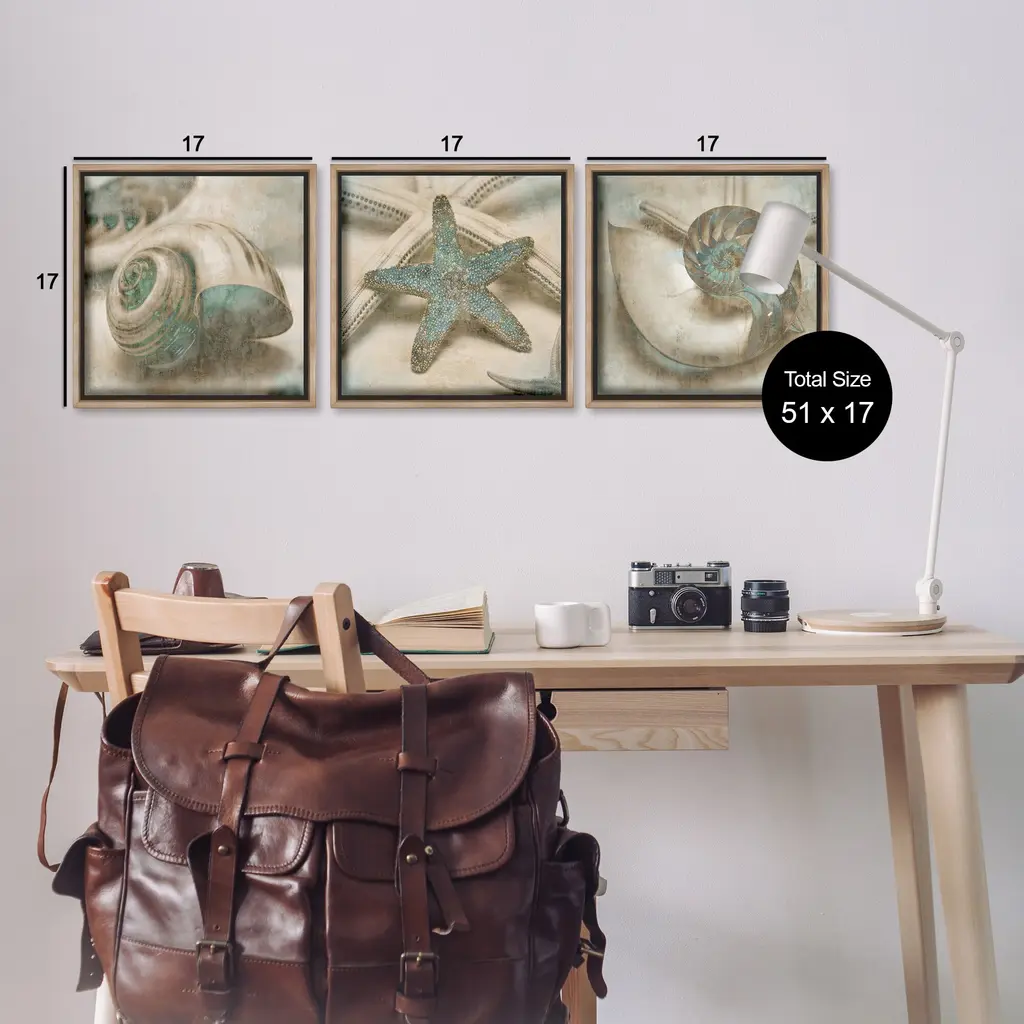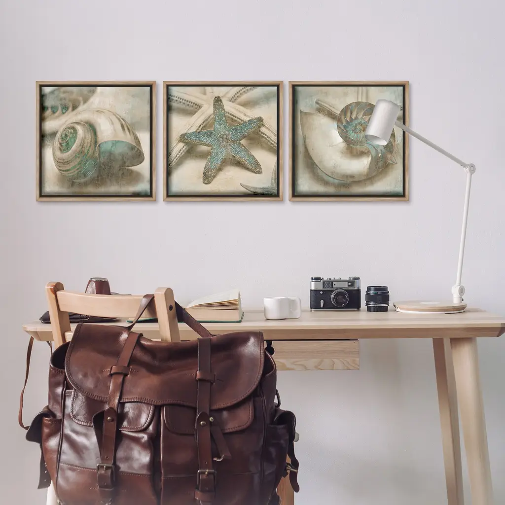 Stupell Starfish & Sea Shells Distressed Framed Floater Canvas Wall Art Design By John Seba (Set Of 3) - 18 X 18 - Brown