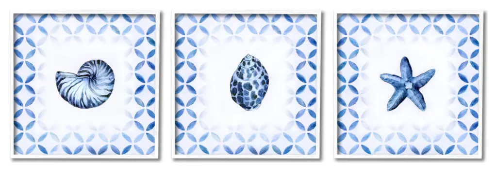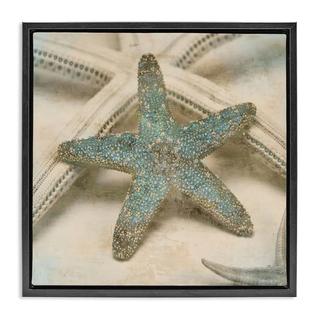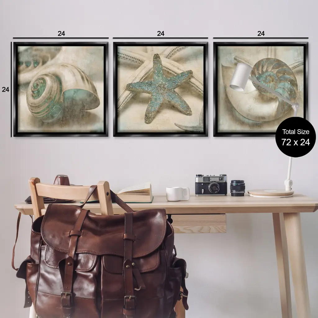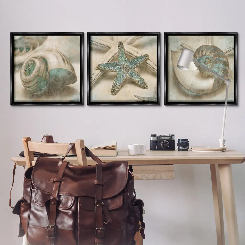 Stupell Starfish & Sea Shells Distressed Framed Floater Canvas Wall Art Design By John Seba (Set Of 3) - 25 X 25 - Black