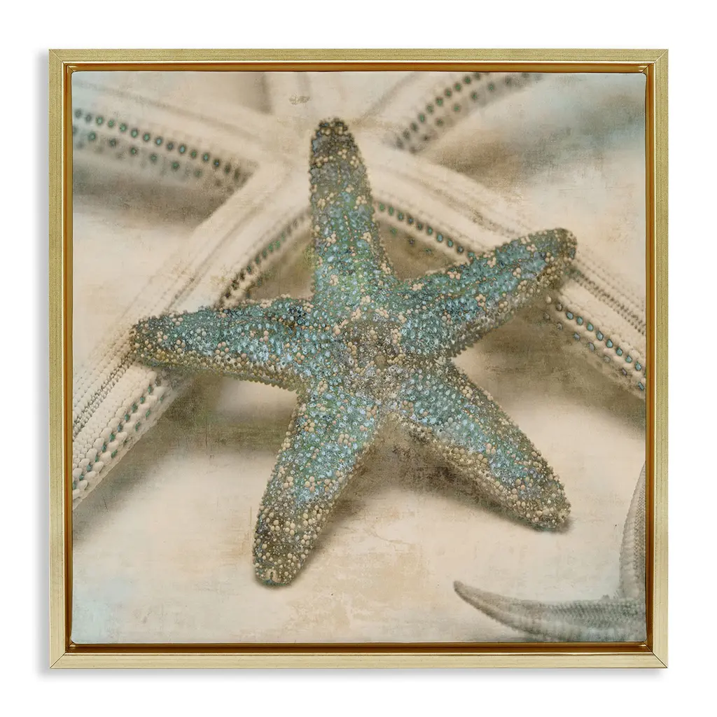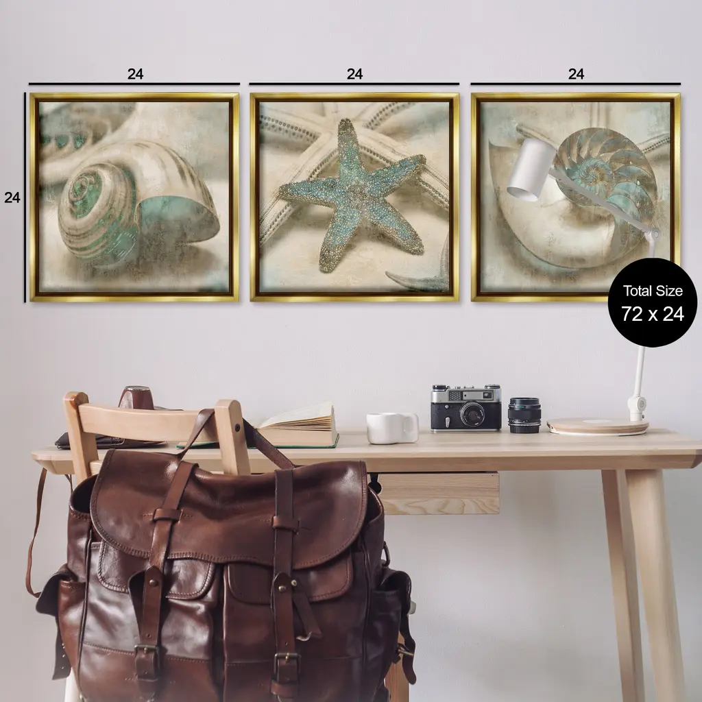 Stupell Starfish & Sea Shells Distressed Framed Floater Canvas Wall Art Design By John Seba (Set Of 3) - 25 X 25 - Gold