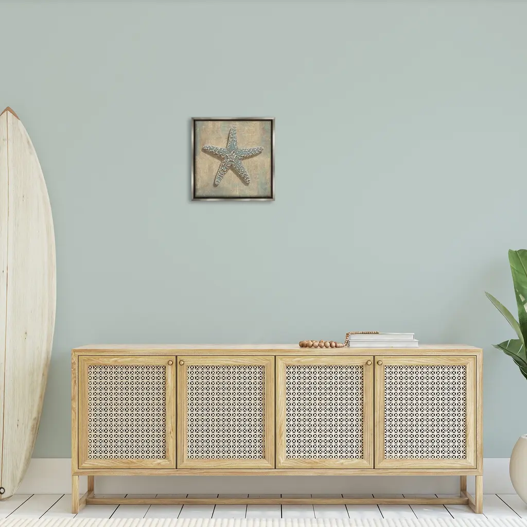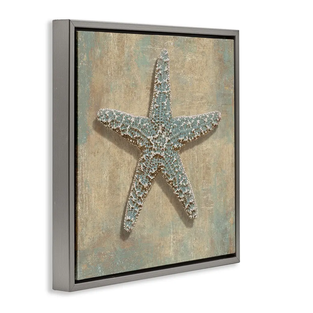 Elevate your home or office to the next level with Stupell Framed Floating Canvas Wall Art. Our premium hand-stretched canvas is mounted securely into a sturdy lightweight frame. The museum-style gap between the wrapped canvas and the box frame gives the illusion of floating artwork. Stupell Wall Art is made in the USA.Features: Dimensions: 18 x 1.7 x 18 Frame, 17 x 1.5 x 17 Canvas ArtFloating Frame Canvas Products are available in sizes 18"x18" and 25"x25". All Floating Frame Canvas Products have a 1.7" Depth.Wall Art is Ready to Hang with Hardware Free Hanging. No Installation required. For Easy Set Up Lean or Layer Artwork on Shelf or Against Wall. Artwork is Permently Fixed into the Frame.Our elevated 1.7" Thick Floating Frame is the perfect complement to our canvas style Wall Art. We use only the highest quality inks in house with industry leading printing solutions. Canvas is hand stretched over a durable wood foundation and then mounted securly into a Modern Box Frame. Made in the USA.Artwork Relates To: Seashell, Rustic, Sea Life, Nautical, Maritime, StarfishDesign by Caroline Kelly
