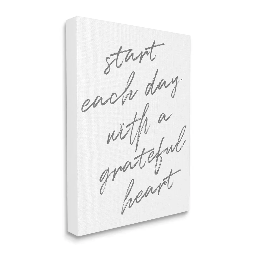 Stupell Start Each Day Grateful Inspirational Phrase Distressed Typography Canvas Wall Art - Grey - 24 X 30
