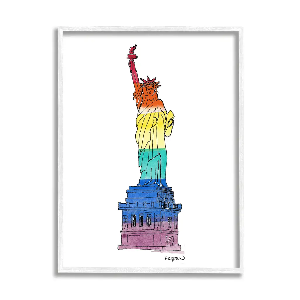 Add dimension to any room with our textured Framed Giclee Artwork. Our framed artwork is securely mounted into a 1.5-inch thick wood grain frame and ready to hang. Frames are available in three alluring styles: black, gray farmhouse and white. In addition, you should check out our oversized options if you want a statement piece. Stupell Wall Art is made in the USA.Features: Dimensions: 11 x 1.5 x 14 FramedFramed Giclee Sizes Include Standard: 11 x 1.5 x 14 Large: 16 x 1.5 x 20 Oversized: 24 x 1.5 x 30Wall Art is Ready to Hang - No Installation or Hardware Needed. For Easy Set Up Lean or Layer Artwork on Shelf or Against Wall.Our giclée prints are carefully mounted on a durable MDF backing, and then perfectly finished in a 1.5 inch thick woodgrain frame. Mounted frame colors include black, gray farmhouse and white. Made In USA.Artwork Relates To: Statue Of Liberty, New York, Symbol, Rainbow, PrideDesign by Mark Higden