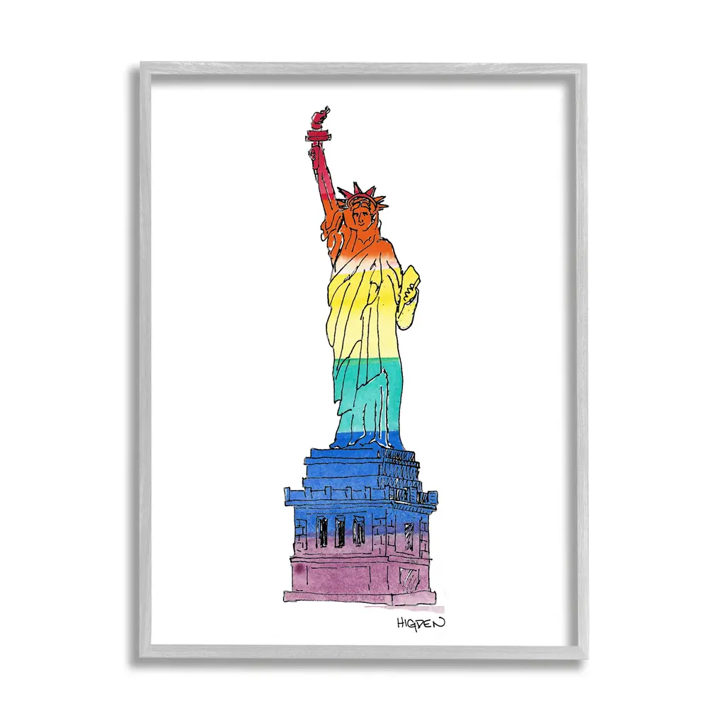 Add dimension to any room with our textured Framed Giclee Artwork. Our framed artwork is securely mounted into a 1.5-inch thick wood grain frame and ready to hang. Frames are available in three alluring styles: black, gray farmhouse and white. In addition, you should check out our oversized options if you want a statement piece. Stupell Wall Art is made in the USA.Features: Dimensions: 11 x 1.5 x 14 FramedFramed Giclee Sizes Include Standard: 11 x 1.5 x 14 Large: 16 x 1.5 x 20 Oversized: 24 x 1.5 x 30Wall Art is Ready to Hang - No Installation or Hardware Needed. For Easy Set Up Lean or Layer Artwork on Shelf or Against Wall.Our giclée prints are carefully mounted on a durable MDF backing, and then perfectly finished in a 1.5 inch thick woodgrain frame. Mounted frame colors include black, gray farmhouse and white. Made In USA.Artwork Relates To: Statue Of Liberty, New York, Symbol, Rainbow, PrideDesign by Mark Higden