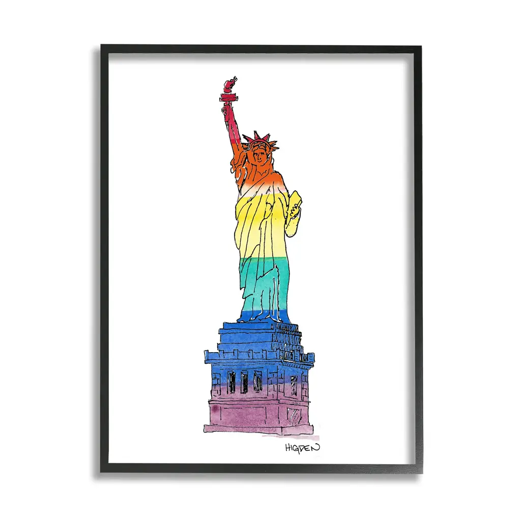Add dimension to any room with our textured Framed Giclee Artwork. Our framed artwork is securely mounted into a 1.5-inch thick wood grain frame and ready to hang. Frames are available in three alluring styles: black, gray farmhouse and white. In addition, you should check out our oversized options if you want a statement piece. Stupell Wall Art is made in the USA.Features: Dimensions: 11 x 1.5 x 14 FramedFramed Giclee Sizes Include Standard: 11 x 1.5 x 14 Large: 16 x 1.5 x 20 Oversized: 24 x 1.5 x 30Wall Art is Ready to Hang - No Installation or Hardware Needed. For Easy Set Up Lean or Layer Artwork on Shelf or Against Wall.Our giclée prints are carefully mounted on a durable MDF backing, and then perfectly finished in a 1.5 inch thick woodgrain frame. Mounted frame colors include black, gray farmhouse and white. Made In USA.Artwork Relates To: Statue Of Liberty, New York, Symbol, Rainbow, PrideDesign by Mark Higden
