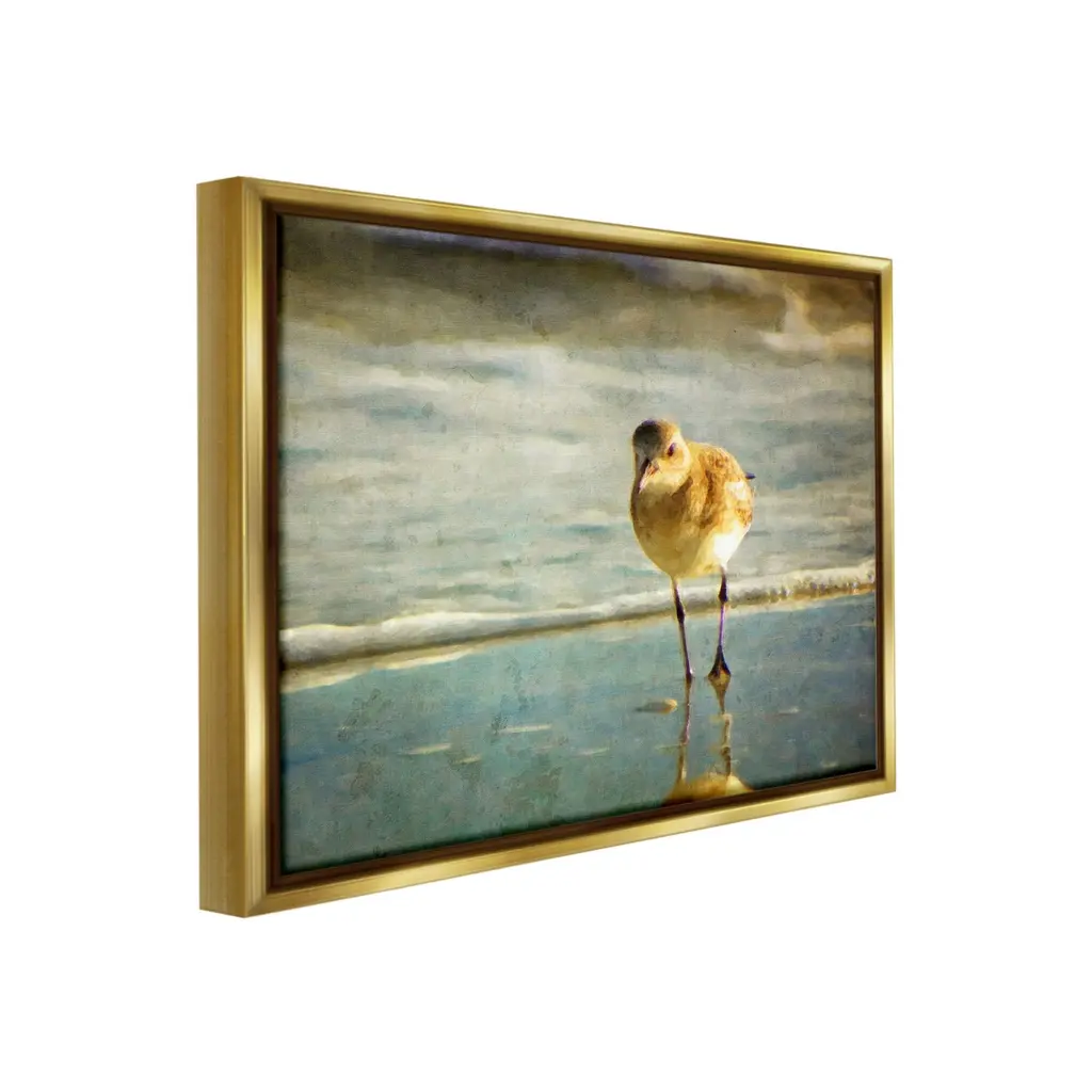 Stupell Stepping Sandpiper At Shore Framed Floater Canvas Wall Art Design By Graffitee Studios - 31 X 25 - Gold