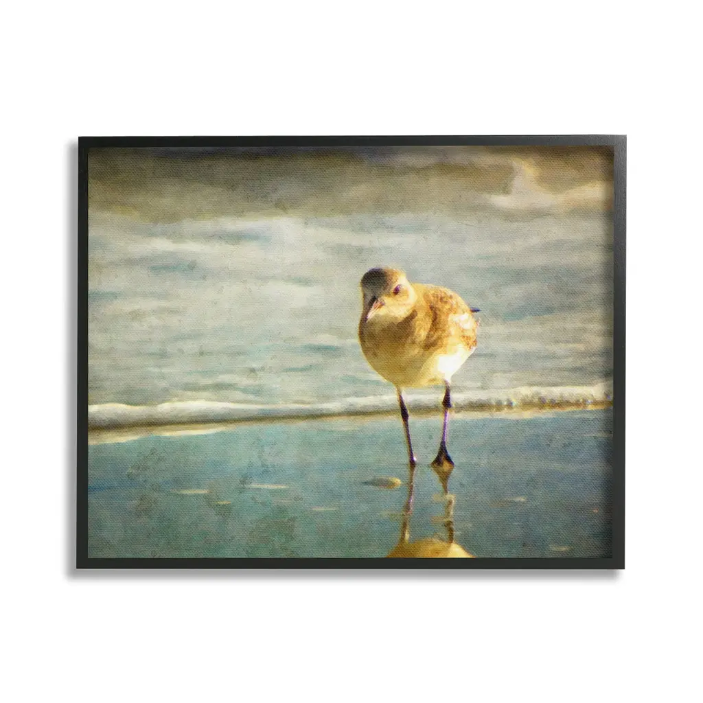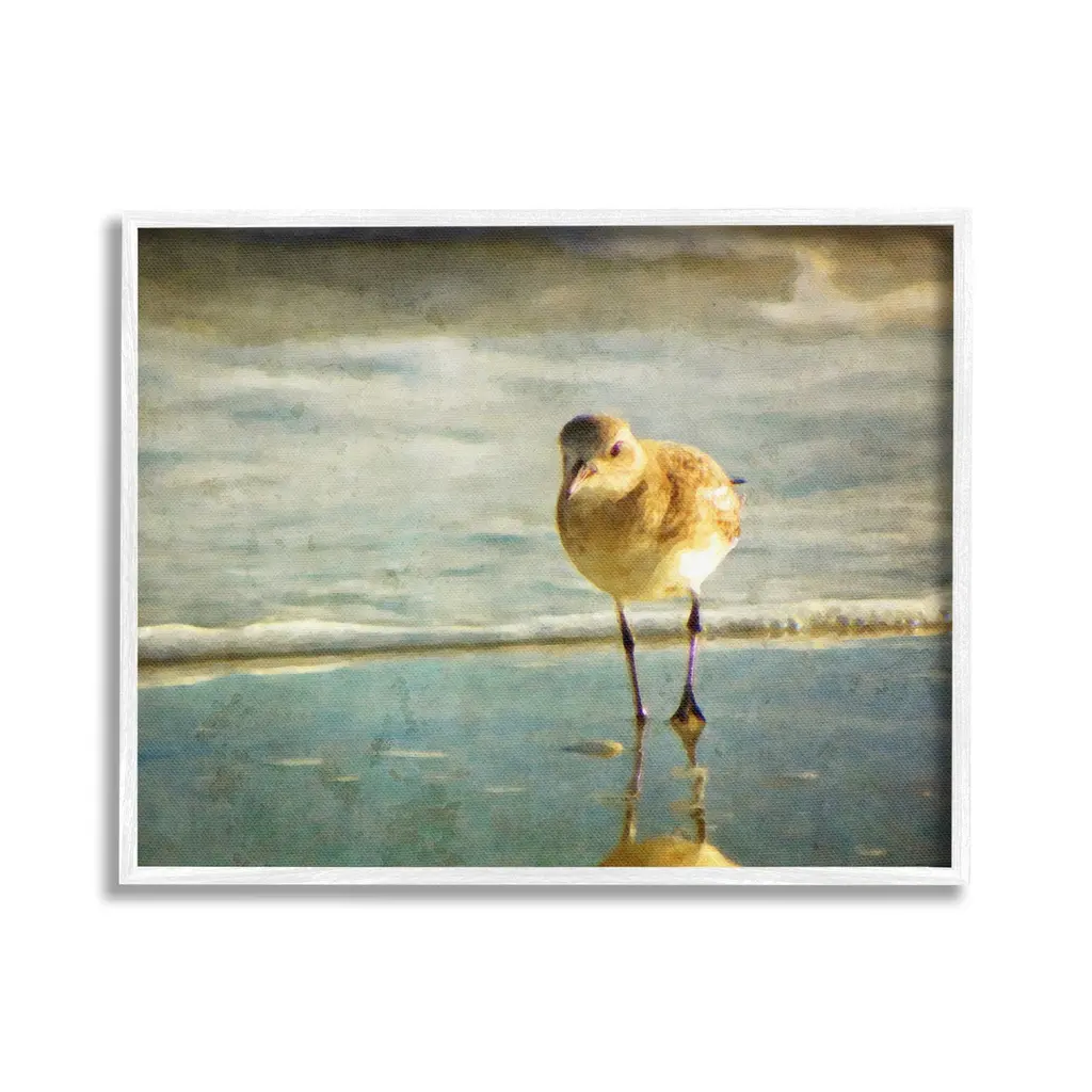 Add dimension to any room with our textured Framed Giclee Artwork. Our framed artwork is securely mounted into a 1.5-inch thick wood grain frame and ready to hang. Frames are available in three alluring styles: black, gray farmhouse and white. In addition, you should check out our oversized options if you want a statement piece. Stupell Wall Art is made in the USA.Features: Dimensions: 14 x 1.5 x 11 FramedFramed Giclee Products are available in the sizes 14"x11", 20"x16" or 30"x24". All Framed Giclee Products have a 1.5" Depth. Wall Art is Ready to Hang with Hardware Free Hanging. No installation required. For Easy Set Up Lean or Layer Artwork on Shelf or Against Wall.Our giclée prints are carefully mounted on a durable MDF backing, and then perfectly finished in a 1.5 inch thick woodgrain frame. Mounted frame colors include black, gray farmhouse and white. Made In USA.Artwork Relates To: Animal, Beak, Bird, Sea, Water, Beach, Coast, Shoreline, Sea Waves, SandpiperDesign by GraffiTee Studios