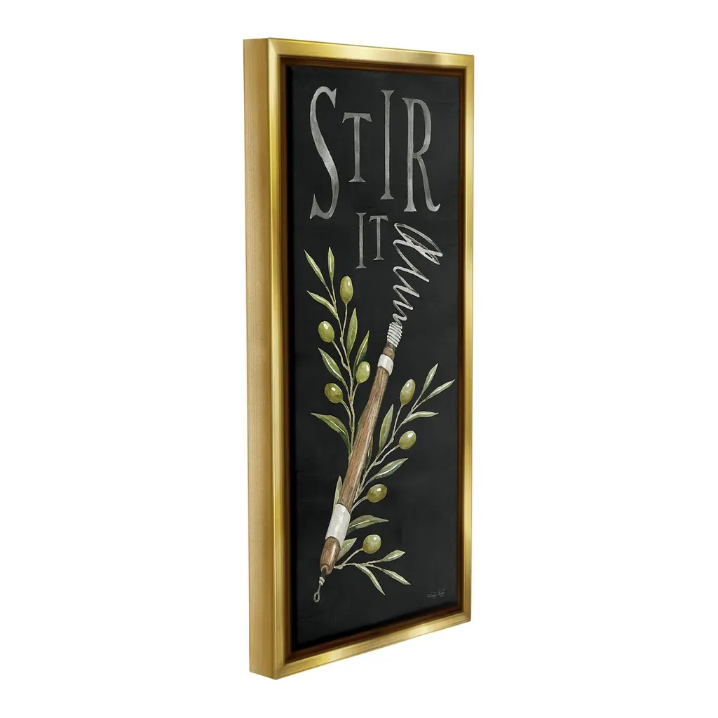 Elevate your home or office to the next level with Stupell Framed Floating Canvas Wall Art. Our premium hand-stretched canvas is mounted securely into a sturdy lightweight frame. The museum-style gap between the wrapped canvas and the box frame gives the illusion of floating artwork. Stupell Wall Art is made in the USA.Features: Dimensions: 11 x 1.7 x 25 Frame, 10 x 1.5 x 24 Canvas ArtFloating Frame Canvas Products are available in sizes 11"x25" and 14"x31". All Floating Frame Canvas Products have a 1.7" Depth.Wall Art is Ready to Hang with Hardware Free Hanging. No Installation required. For Easy Set Up Lean or Layer Artwork on Shelf or Against Wall. Artwork is Permently Fixed into the Frame.Our elevated 1.7" Thick Floating Frame is the perfect complement to our canvas style Wall Art. We use only the highest quality inks in house with industry leading printing solutions. Canvas is hand stretched over a durable wood foundation and then mounted securly into a Modern Box Frame. Made in the USA.Artwork Relates To: Kitchen, Utensil, Country, Rustic, Botanical, Plant, Leaf, Mixer, Stir ItDesign by Cindy Jacobs