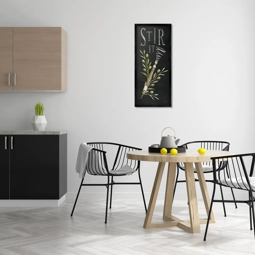 Add dimension to any room with our textured Framed Giclee Artwork. Our framed artwork is securely mounted into a 1.5-inch thick wood grain frame and ready to hang. Frames are available in three alluring styles: black, gray farmhouse and white. In addition, you should check out our oversized options if you want a statement piece. Stupell Wall Art is made in the USA.Features: Dimensions: 10 x 1.5 x 24 FramedFramed Giclee Product Sizes include 10"x24" and 13"x30". All Framed Giclee products have a 1.5" Depth.Wall Art is Ready to Hang with Hardware Free Hanging. No installation required. For Easy Set Up Lean or Layer Artwork on Shelf or Against Wall.Our giclée prints are carefully mounted on a durable MDF backing, and then perfectly finished in a 1.5 inch thick woodgrain frame. Mounted frame colors include black, gray farmhouse and white. Made In USA.Artwork Relates To: Kitchen, Utensil, Country, Rustic, Botanical, Plant, Leaf, Mixer, Stir ItDesign by Cindy Jacobs
