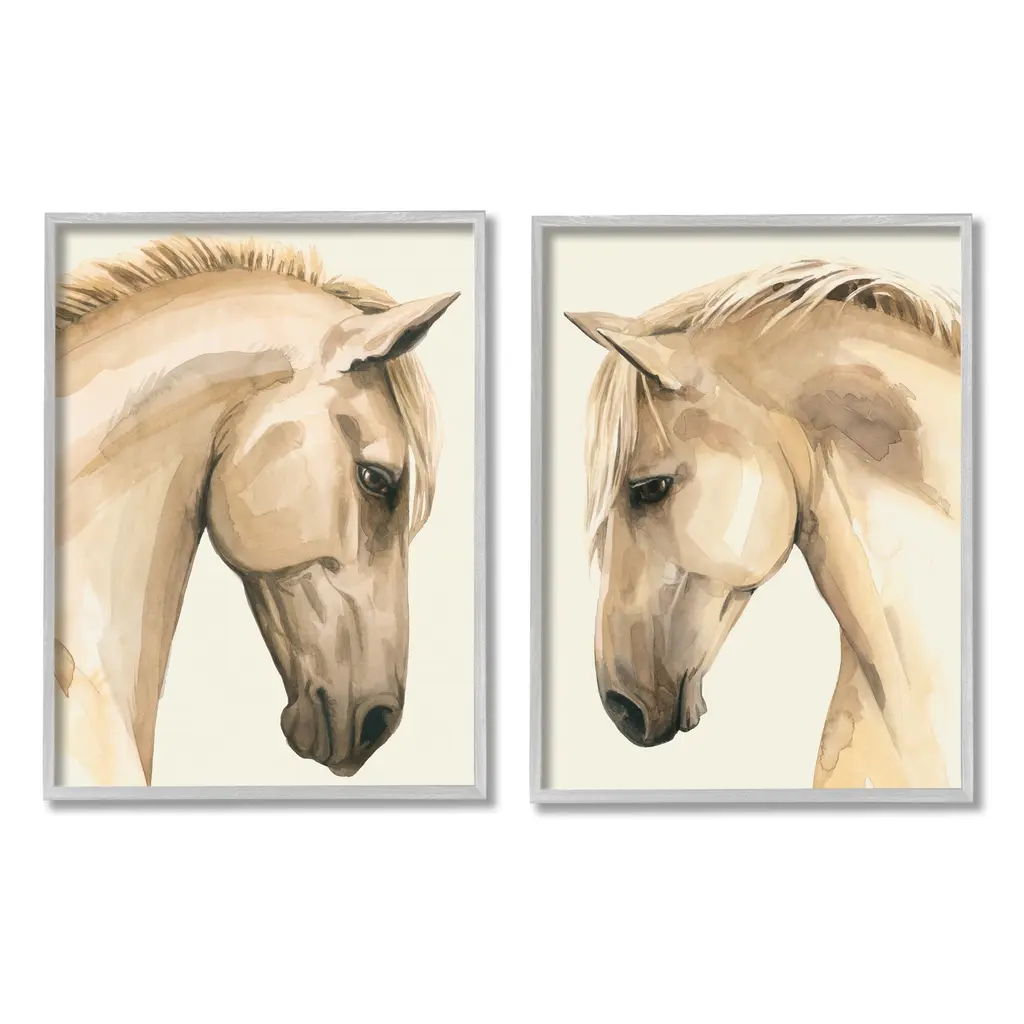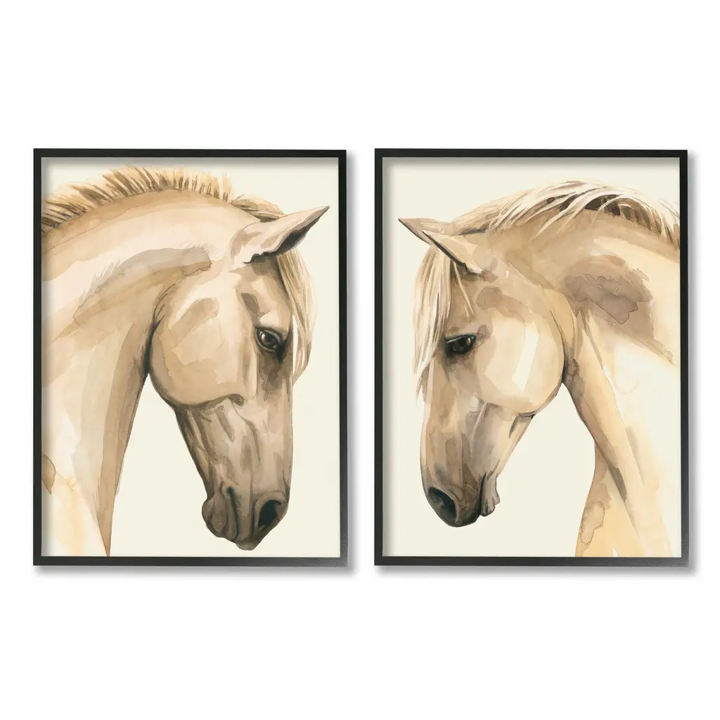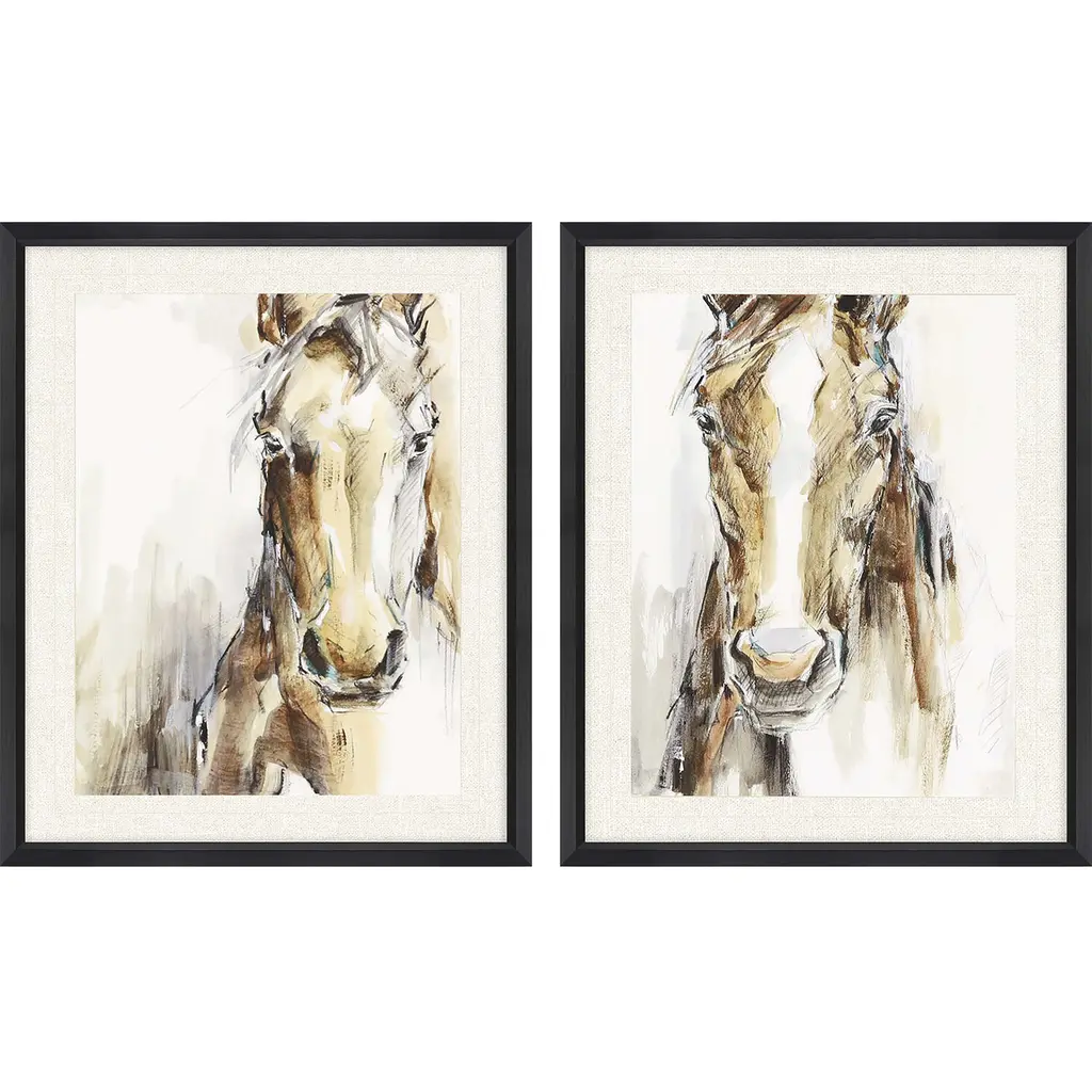 Fill any space in your home or office with our Framed Wall Art Sets. Our textured artwork will add more depth and dimension to any space. Each piece is mounted into a 1.5 inch thick ebony wood grain frame that is ready to hang. Looking for a statement piece? Our boxed framed products are now available in three alluring styles: black, gray farmhouse and white. We have oversized artwork available.Features:Framed Giclee Set Sizes IncludeStandard: 2pc Each is 11 x 1.5 x 14Large: 2pc Each is 16 x 1.5 x 20Oversized: 2pc Each is 24 x 1.5 x 30Wall Art is Ready to Hang - No Installation or Hardware Needed. For Easy Set Up Lean or Layer Artwork on Shelf or Against Wall.Artwork Relates To: Horse, Animal, Mammal, Painting, Wildlife, Farm AnimalCurated Wall Art Sets make it easy for you complete the theme for any room. Our giclee prints are carefully mounted on a durable MDF backing, and then perfectly finished in a 1.5 inch thick woodgrain frame. Mounted frame colors include black, gray farmhouse and white. Made In USA.Design by Grace Popp