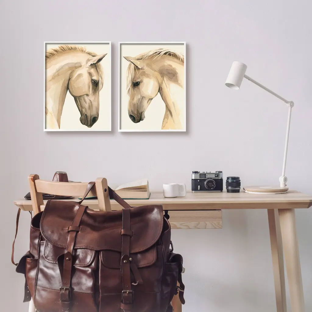 Stupell Stoic Farm Horse Portrait 2 Piece Set Framed Giclee Texturized Wall Art, Design By Grace Popp - 11 X 14 - White