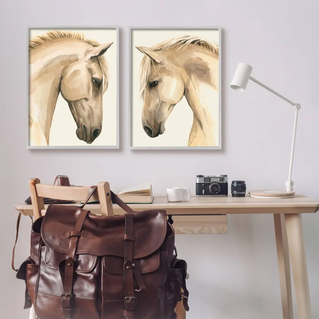 Fill any space in your home or office with our Framed Wall Art Sets. Our textured artwork will add more depth and dimension to any space. Each piece is mounted into a 1.5 inch thick ebony wood grain frame that is ready to hang. Looking for a statement piece? Our boxed framed products are now available in three alluring styles: black, gray farmhouse and white. We have oversized artwork available.Features:Framed Giclee Set Sizes IncludeStandard: 2pc Each is 11 x 1.5 x 14Large: 2pc Each is 16 x 1.5 x 20Oversized: 2pc Each is 24 x 1.5 x 30Wall Art is Ready to Hang - No Installation or Hardware Needed. For Easy Set Up Lean or Layer Artwork on Shelf or Against Wall.Artwork Relates To: Horse, Animal, Mammal, Painting, Wildlife, Farm AnimalCurated Wall Art Sets make it easy for you complete the theme for any room. Our giclee prints are carefully mounted on a durable MDF backing, and then perfectly finished in a 1.5 inch thick woodgrain frame. Mounted frame colors include black, gray farmhouse and white. Made In USA.Design by Grace Popp