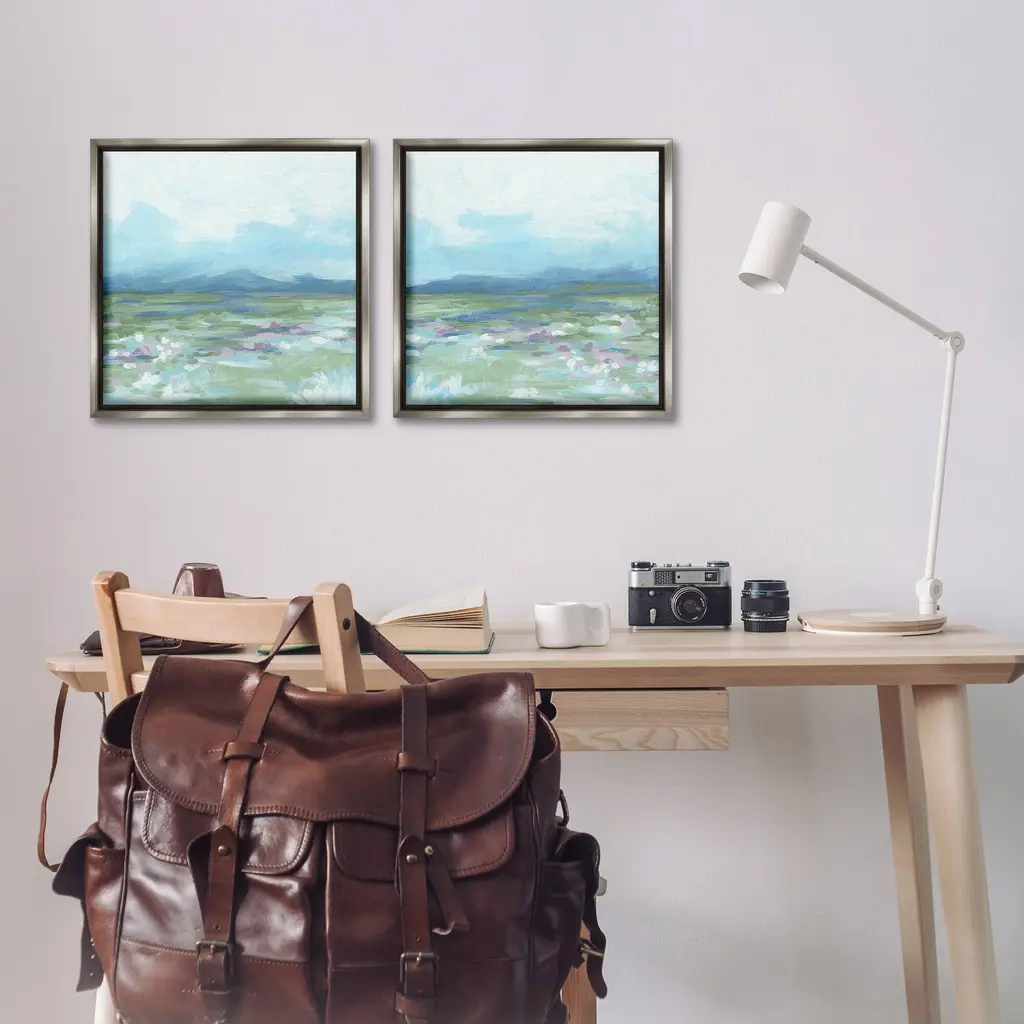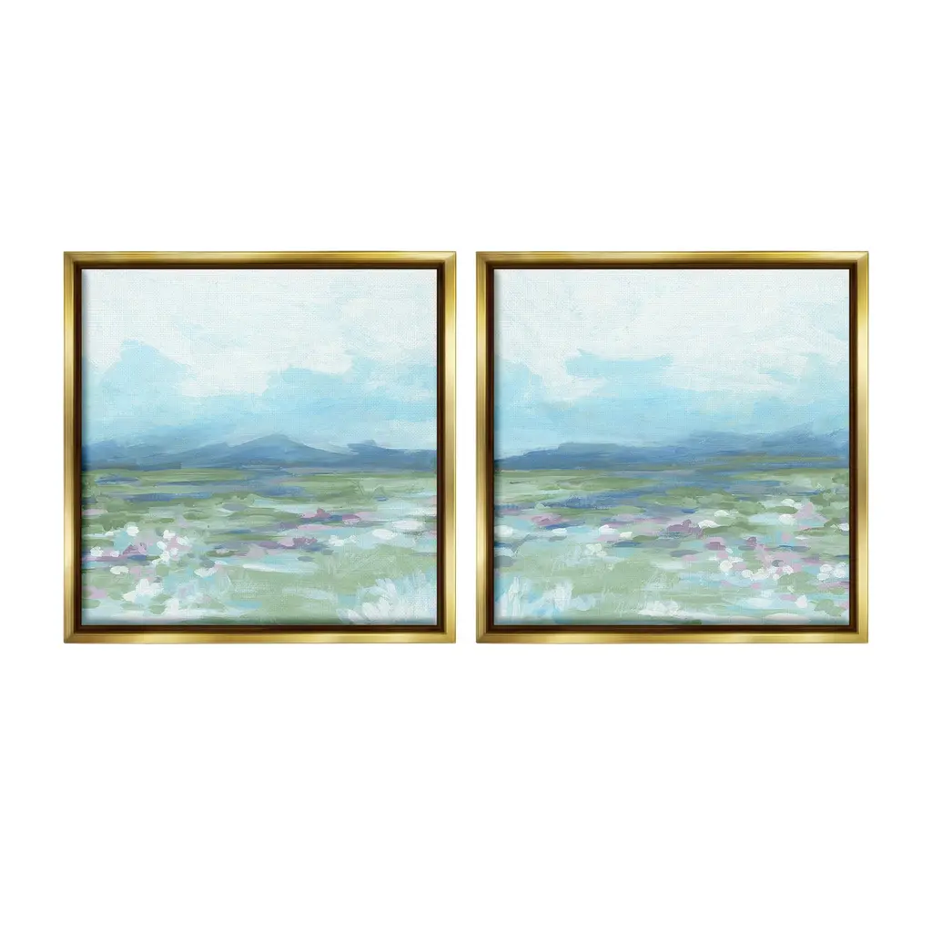 Elevate your home or office to the next level with Stupell Framed Floating Canvas Wall Art. Our premium hand-stretched canvas is mounted securely into a sturdy lightweight frame. The museum-style gap between the wrapped canvas and the box frame gives the illusion of floating artwork. Stupell Wall Art is made in the USA.Features: Dimensions: 2 Piece Set, Each Frame is 18 x 1.7 x 18Two Piece Floating Frame Canvas Products are available as 18"x18" or 25"x25" Panels. All Floating Frame Canvas Products have a 1.7" Depth.Wall Art is Ready to Hang with Hardware Free Hanging. No Installation required. For Easy Set Up Lean or Layer Artwork on Shelf or Against Wall. Artwork is Permently Fixed into the Frame.Our elevated 1.7" Thick Floating Frame is the perfect complement to our canvas style Wall Art. We use only the highest quality inks in house with industry leading printing solutions. Canvas is hand stretched over a durable wood foundation and then mounted securly into a Modern Box Frame. Made in the USA.Artwork Relates To: Painting, Nature, Flower, Plant, Landscape, Meadow, Abstract, Modern, Field, CottageDesign by June Erica Vess