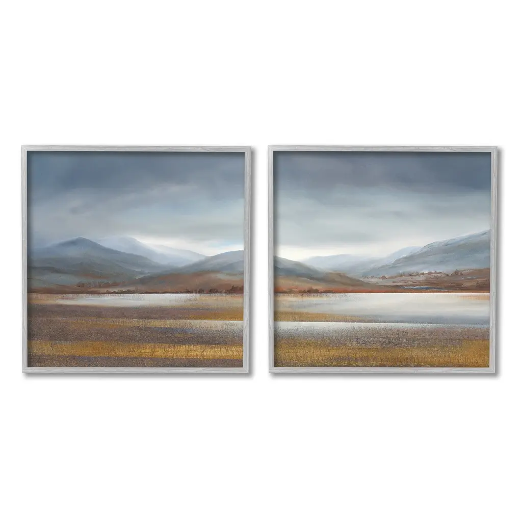 Stupell Stormy Mountain Landscape Framed Floater Canvas Wall Art Design By June Erica Vess (Set Of 2) - 18 X 18 - Grey