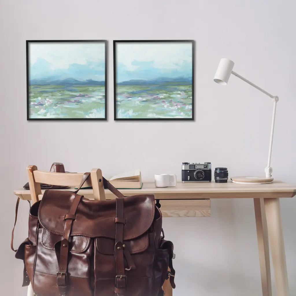 Fill any space in your home or office with our Framed Wall Art Sets. Our framed artwork is securely mounted into a 1.5-inch thick wood grain frame and ready to hang. Frames are available in three alluring styles: black, gray farmhouse and white. Stupell Wall Art is made in the USA.Features: Dimensions: 2 Piece Set, Each Panel is 12 x 1.5 x 12 FramedTwo Piece Framed Giclee Sets are available as 12"x12", 17"x17" or 24"x24" Panels. All Framed giclee Products have a 1.5" Depth.Wall Art is Ready to Hang with Hardware Free Hanging. No installation required. For Easy Set Up Lean or Layer Artwork on Shelf or Against Wall.Curated Wall Art Sets make it easy for you complete the theme for any room. Our giclée prints are carefully mounted on a durable MDF backing, and then perfectly finished in a 1.5 inch thick woodgrain frame. Mounted frame colors include black, gray farmhouse and white. Made In USA.Artwork Relates To: Painting, Nature, Flower, Plant, Landscape, Meadow, Abstract, Modern, Field, CottageDesign by June Erica Vess